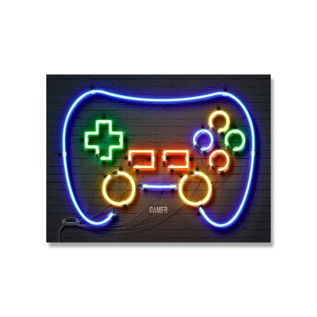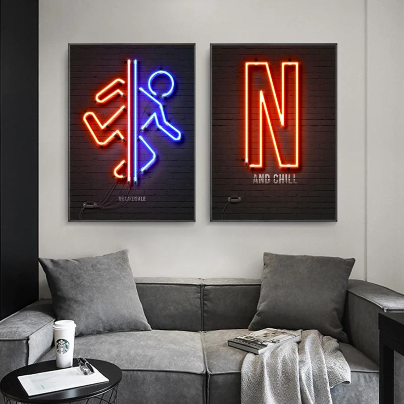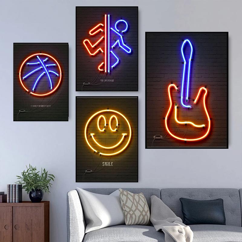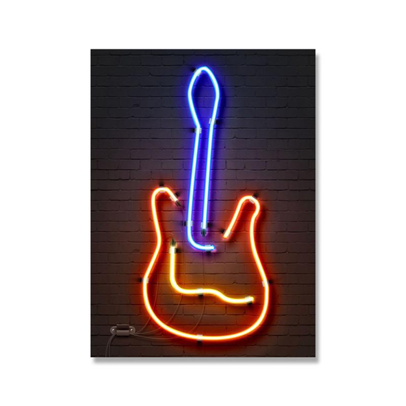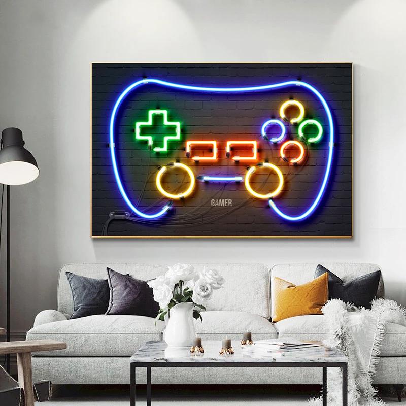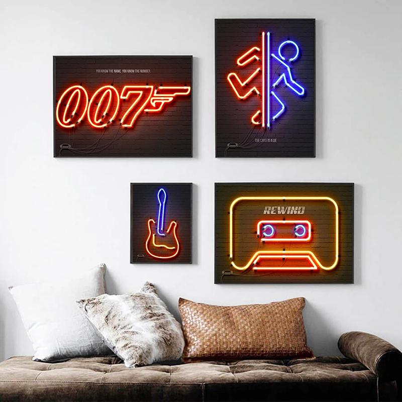 Неоновый свет, геймерские картины на холсте, ретро аудиокассета, гитара, вывеска, постеры, принты, настенные художественные картинки для декора стен гостиной