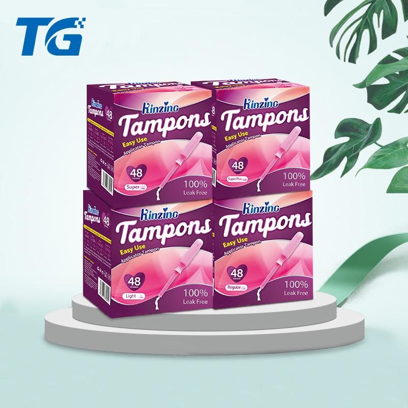 Структура и тип: Материал перемешивается, диаметром от 1 см до 1,9 см и других размеров, конец сопровождается хлопчатобумажной нитью (веревка). Степень дуги кончика тампона варьируется от марки к марке, так что пользователи могут выбирать в соответствии со своими привычками использования. Тело тампона часто имеет линейное или саржевое углубление, которое может увеличить способность тампона направлять поток и может прилегать к стенке влагалища при поглощении менструальной крови. Тампоны катетерного типа оснащены бумажными или пластиковыми катетерами для легкого введения. Общая конструкция трубопровода делится на наружную трубу и внутреннюю трубу. Поверхность внешней трубки гладкая, а передний конец закруглен для удобства введения. Передний конец наружной трубки имеет отверстие, похожее на лепесток. Функция внутренней трубки заключается в выталкивании тампона из отверстия наружной заслонки трубки в двигательном режиме поршневого типа.