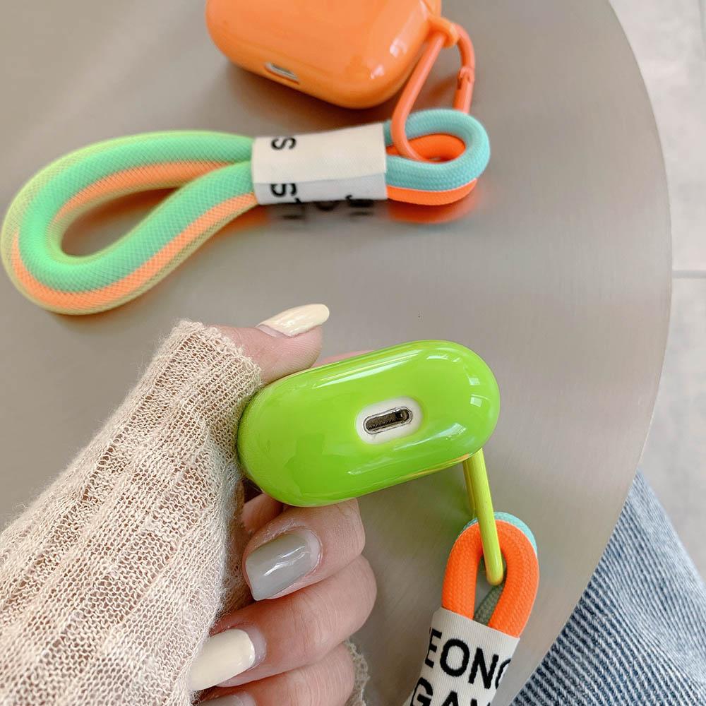 Для Airpods 2 Pro 1 3 чехол для наушников флуоресцентный оранжевый зеленый чехол для ключей с веревкой милый мягкий силиконовый однотонный чехол для наушников