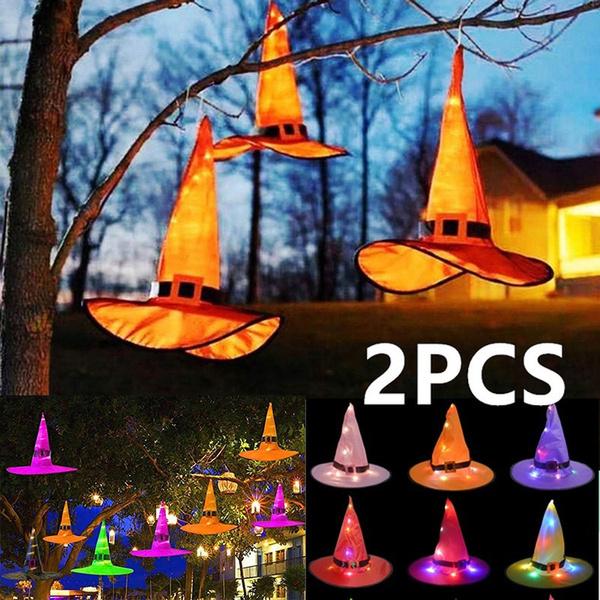 2 шт. украшения для Хэллоуина, уличные подвесные светильники с подсветкой, светящаяся шляпа ведьмы, фонари на батарейках для наружного двора, елочные украшения для реквизита для косплея — купить товар онлайн с бесплатной доставкой по всему миру!