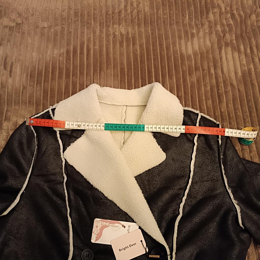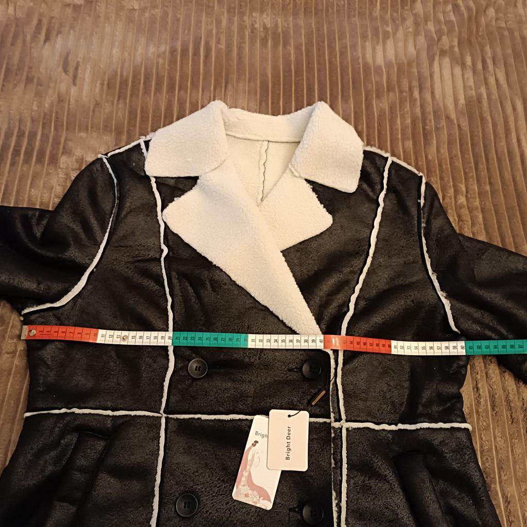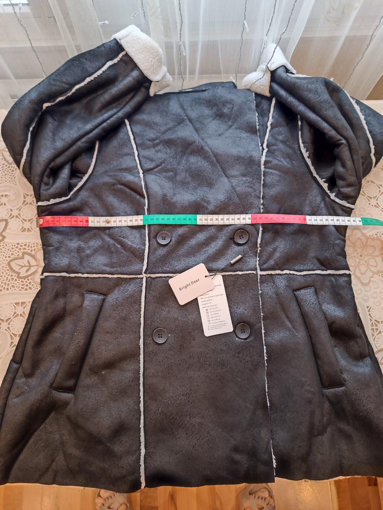 Куртка имитирующая дублёнку. Красивая, качество отличное. Промофото соответствует. Ткань довольно тонкая, только на весну и осень. Для московской зимы никак не подойдёт. В общем вещь могла бы быть отличным приобретением если бы не одно НО: несоответствие таблице размеров продавца. Плечи, рукава, общая длина как в таблице, вот объём груди в размере 3XL всего 120см вместо заявленных 132 см. Естественно, что при моих параметрах 120-105-120, куртка на груди сидит в обтяжку. И ещё куртка пришла очень мятой.. Т.к. ткань куртки немного тянется носить я её смогу,, но только на тонкую кофточку.