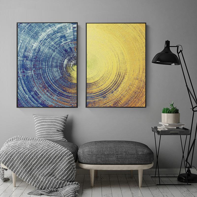 Абстрактные синие и желтые круги, картина на холсте, современные постеры и принты, настенные художественные картины для гостиной, домашний декор