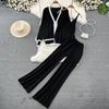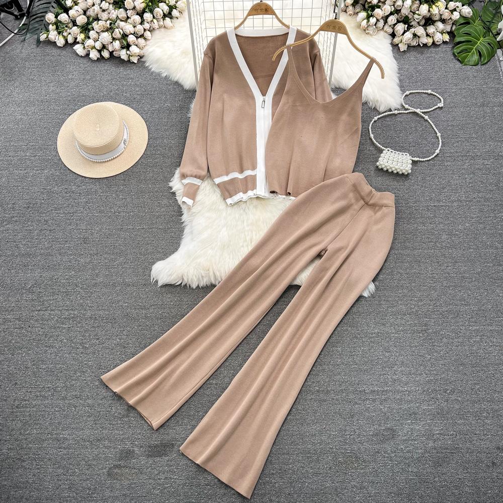 Осень-зима, винтажный однотонный вязаный свитер, брюки, комплект из 3 предметов, женский спортивный костюм, куртка на молнии с длинными рукавами, пальто, жилет, брюки, наряды
