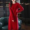 Трикотажное платье средней длины, женское осеннее и зимнее свободное платье-свитер выше колена с круглым вырезом и круглым вырезом, женское платье-свитер с длинными рукавами