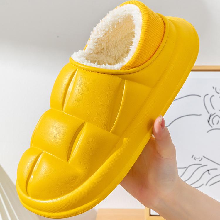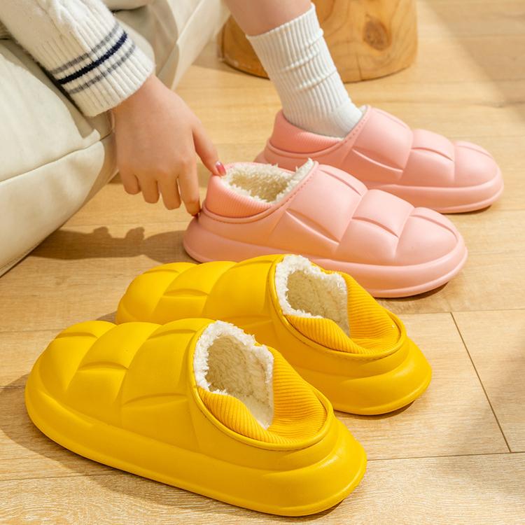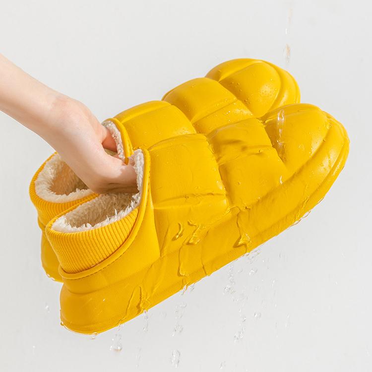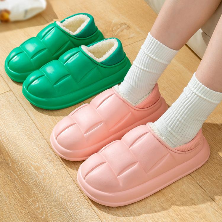 Хлопковые тапочки для женщин на зимней толстой подошве. Водонепроницаемые и теплые плюшевые домашние тапочки с ощущением наступления на фекалии. Хлопковые тапочки на каблуке.