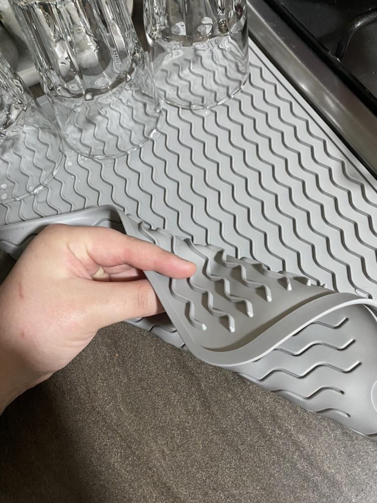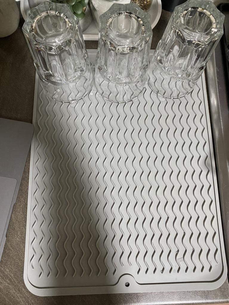 А вот это прямо в точку, что надо для посуды. До этого был коврик из материала( тоже был хорош, пока не увидела силикон) Единственное что вода просачивалась сквозь материал, из-за чего стол был мокрый. Но этот коврик идеален, уже хорошо опробован. Вода просто остаётся на коврике, её сливаешь и всё. На коврике есть отверстие, его можно вешать (что я и делаю). Очень довольна покупкой. Силикон рулит.Спасибо!
