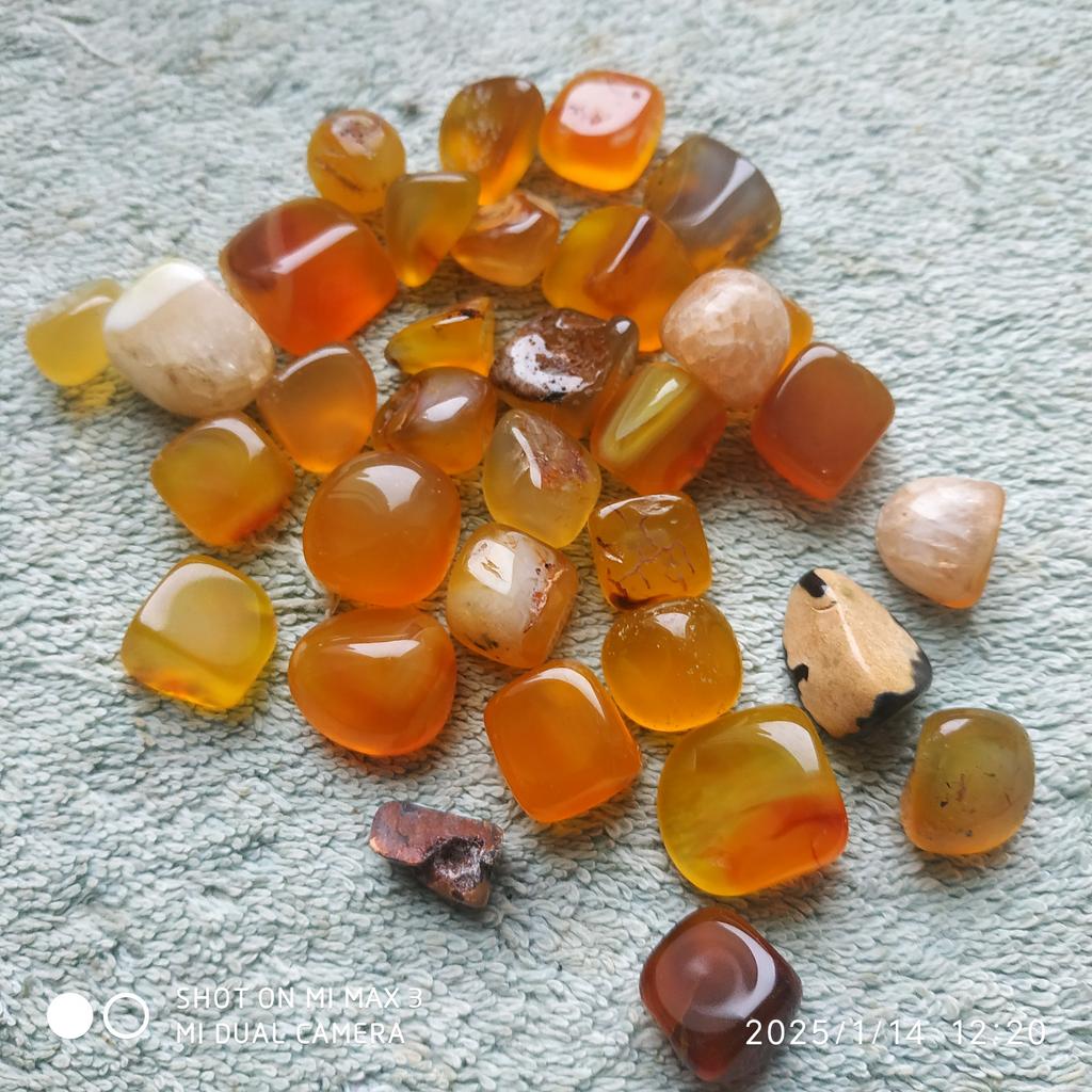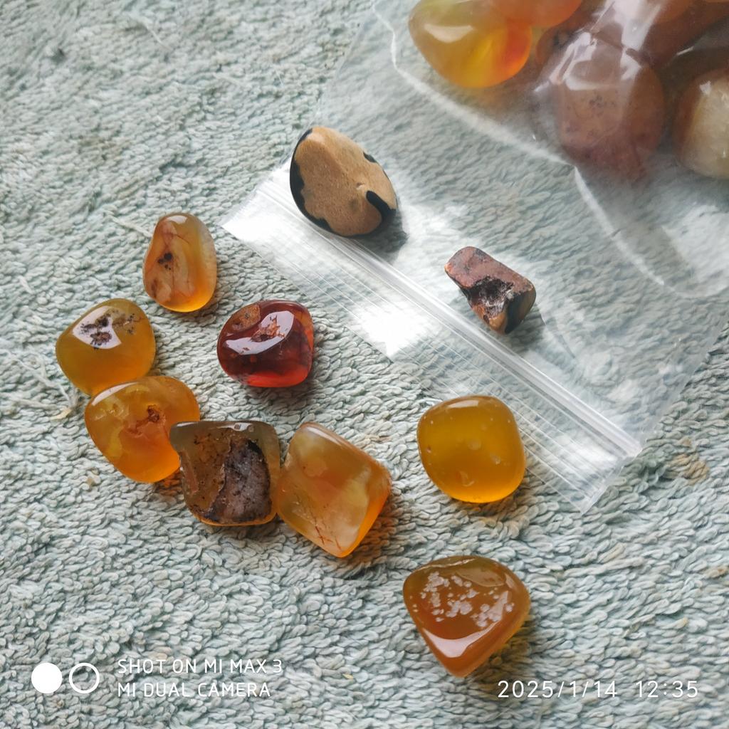Доставка посылки быстрая 17 дней, в посылке четыре заказа. Натуральный жёлтый агат, полированный гравий по качеству не очень качественный из 33 камушек треть камней с раковинами и изъянами; вес заказа 102 гр. Сканирование приложением показывает что это сердолик(агат), спасибо Joom за быструю доставку.