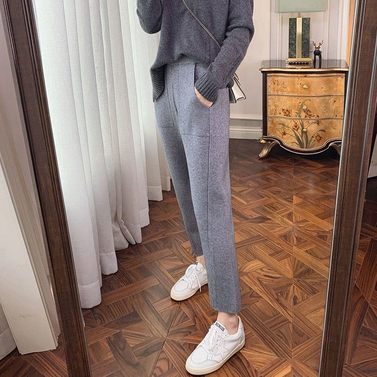 Трикотажные брюки женские осенне-зимние шерстяные широкие повседневные брюки с высокой талией драпирующиеся кашемировые брюки «бабушка» — купить товар онлайн с бесплатной доставкой по всему миру!