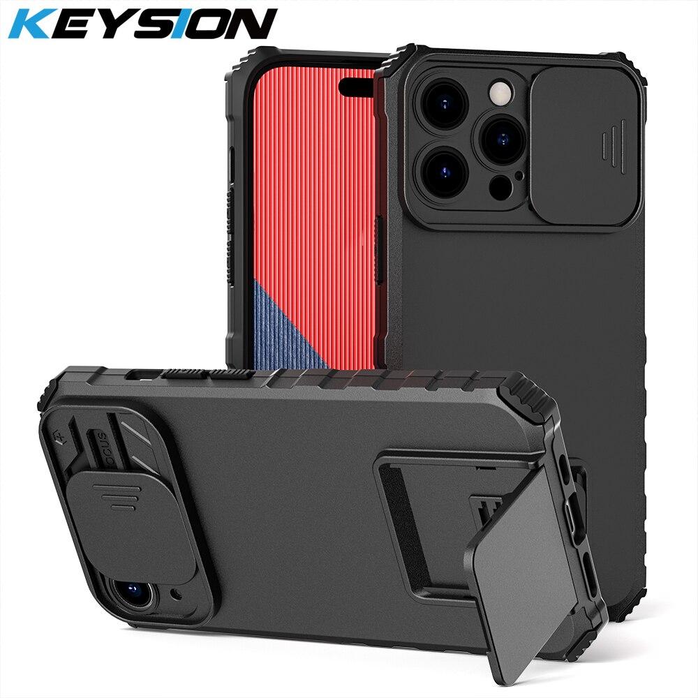 KEYSION Противоударный чехол для iPhone 15 Pro Max 15 Plus, защита слайд-камеры, чехол для телефона с подставкой для iPhone 14 13 12 11 Pro