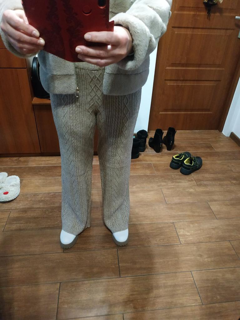 Тёплые трикотажные брюки)) Заказывать было боязно, ведь указана длина 88см, а по факту очень длинные брючки☺️👍 107см в длину. Я их ношу с ботинками на высоченной платформе)) мой рост 158см. Смело подойдут на высокий рост! В талии высокие, тёплые, прямо толстенькие, расклешенные к низу, по краю брючины внизу красиво оформлены другим видом вязки по типу неширокой манжеты. Талия на широкой не тугой резинке. Красивый плетёный рисунок. На параметры 72-98 свободно и хорошо, не обтягивают, хорошо тянутся. На холода отличные👍❣️ Рекомендую смело 😻 Жду вас в своём телеграмм канале olgaluk_nice Или по названию канала Купите это немедленно 💥💥💥 Всегда больше обзоров и дополнительной информации ⚘️❤️ Промокоды на скидку))🍊🧡
