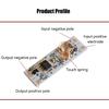 Доставка месяц. Товар вызывает двойственные чувства. С одной стороны - все работает. С другой - очень сильная просадка напряжения при нагрузке. Входное напряжение 24В, выходное 4,36В, при токе 1,37А. Поэтому 4 звезды.