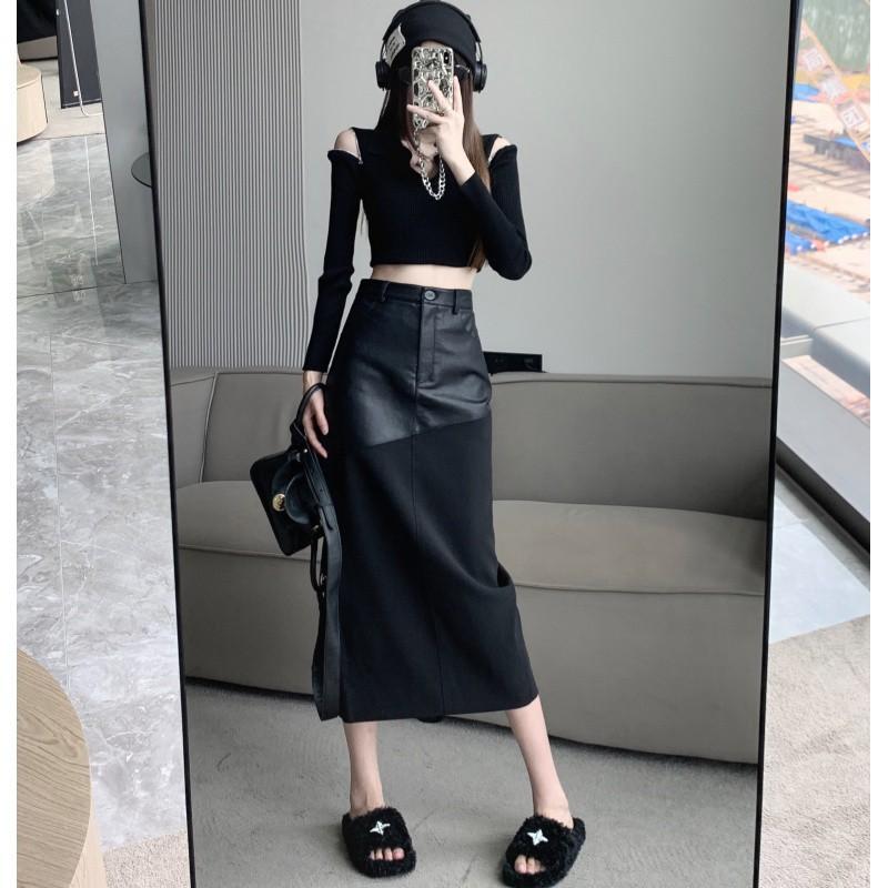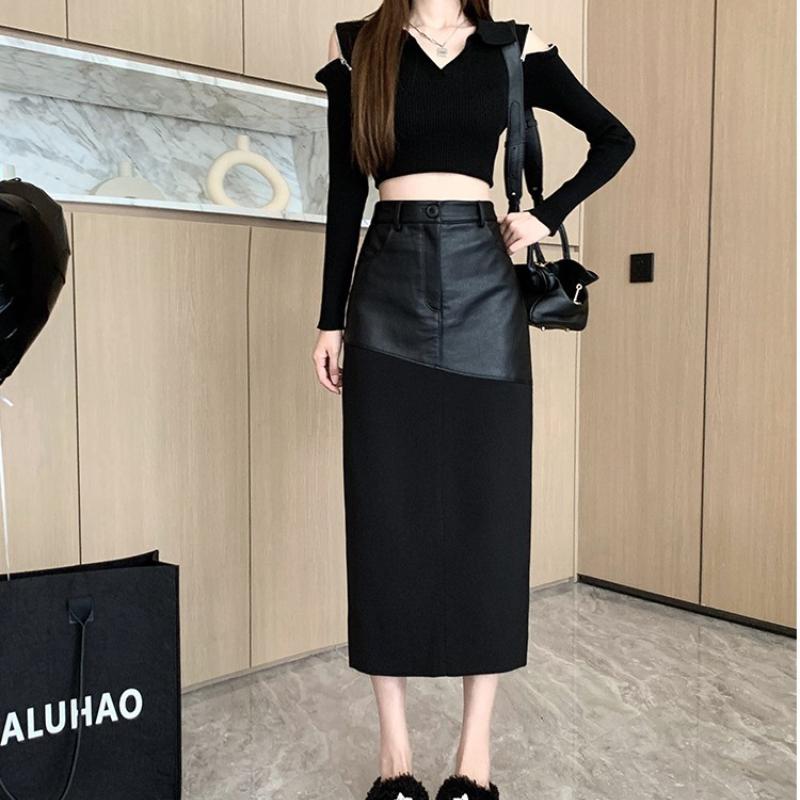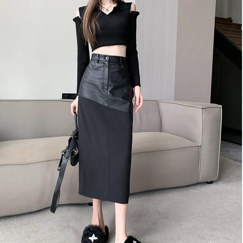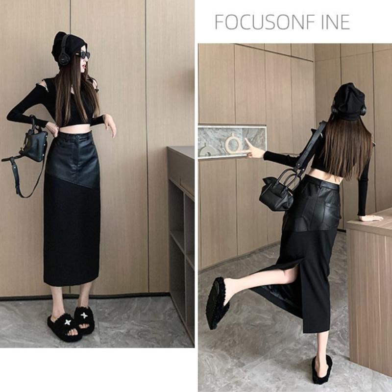 Шикарная и элегантная женская юбка-миди, однотонная обтягивающая облегающая юбка с высокой талией из матовой искусственной кожи, уютная пригородная облегающая юбка, уличная одежда