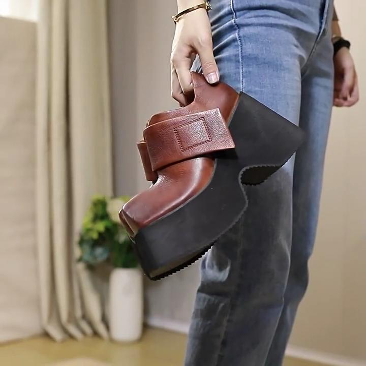 Johnature Туфли из натуральной кожи в стиле ретро на толстой подошве 10 см, женские однотонные туфли на платформе с квадратным носком