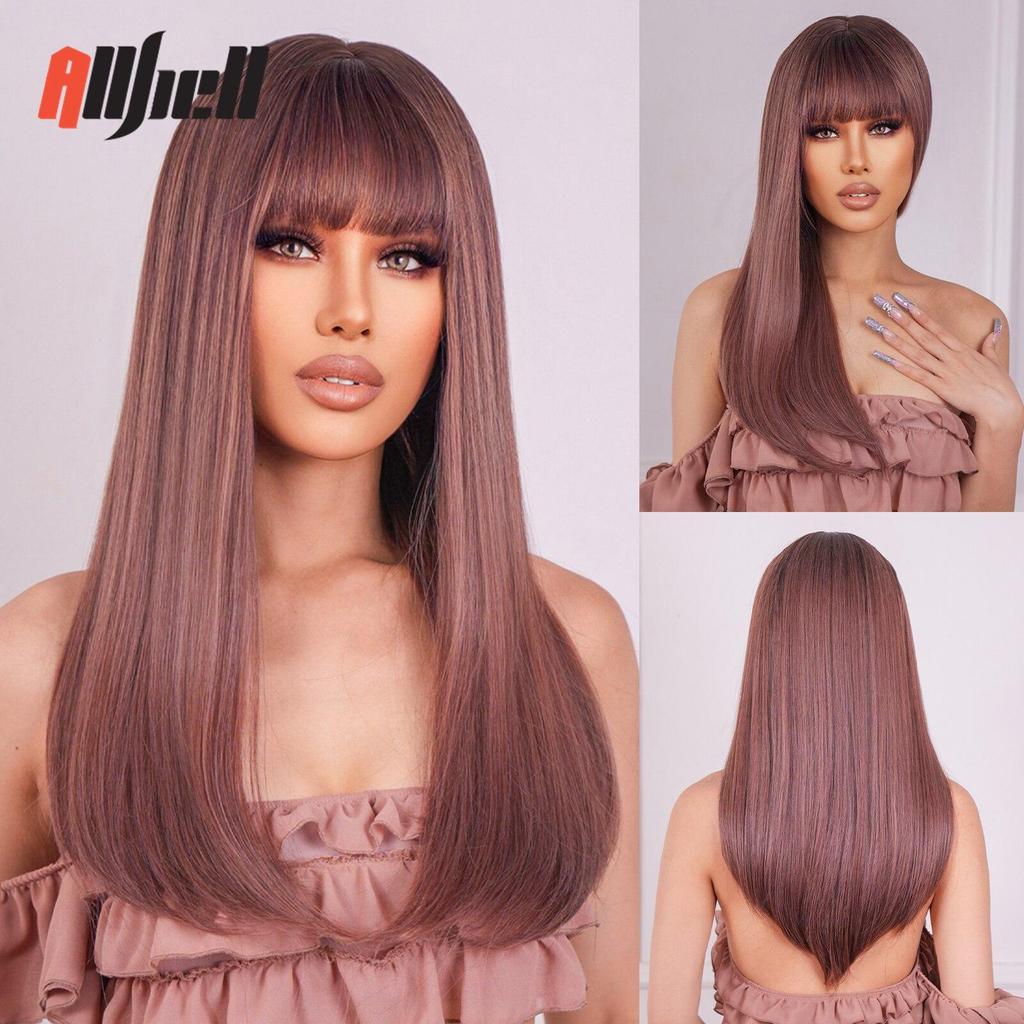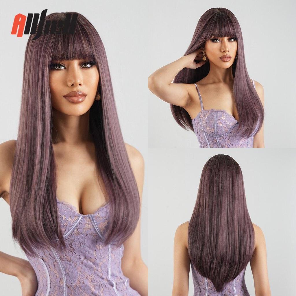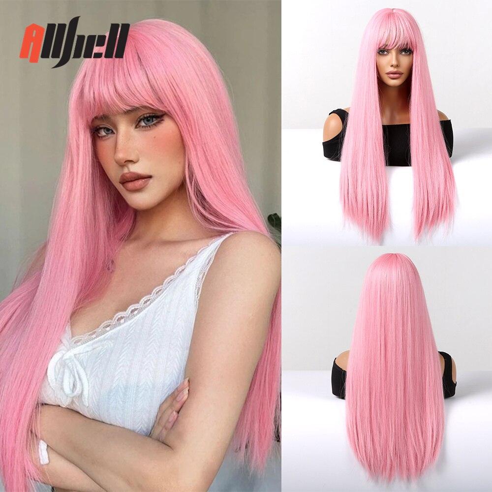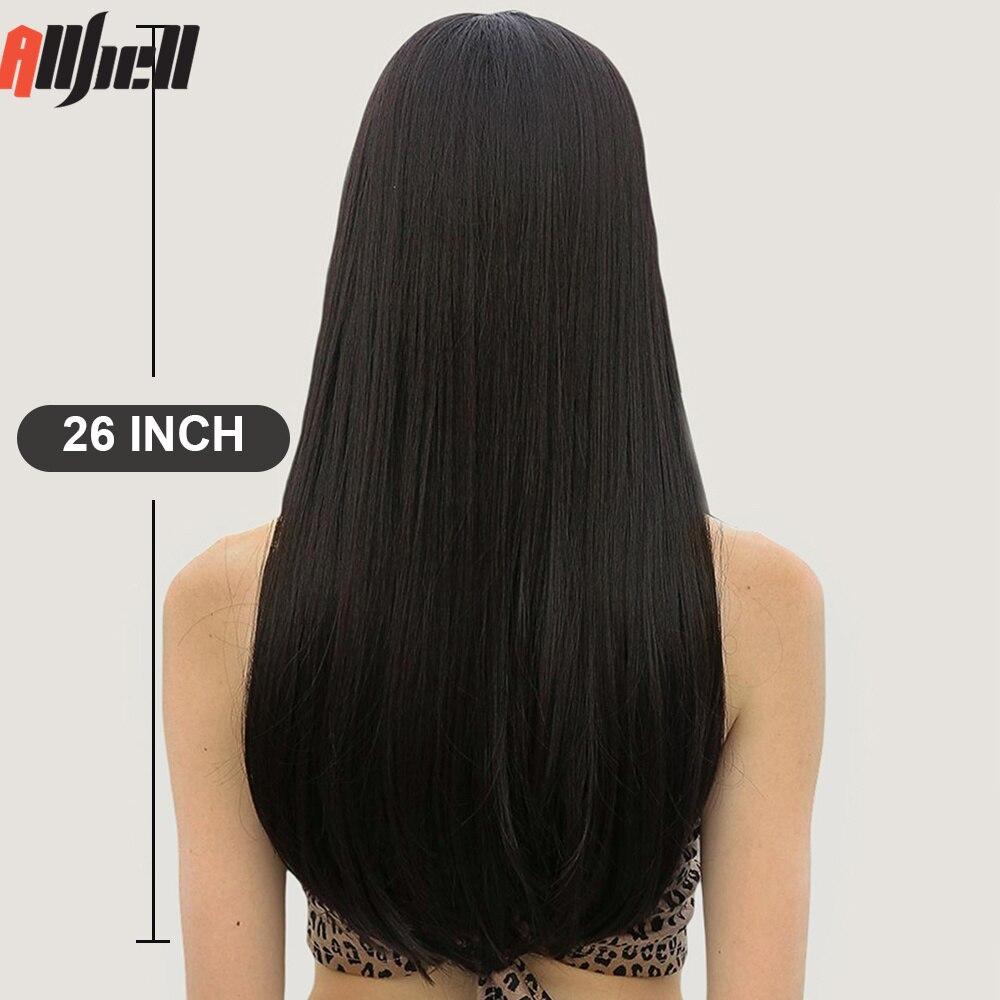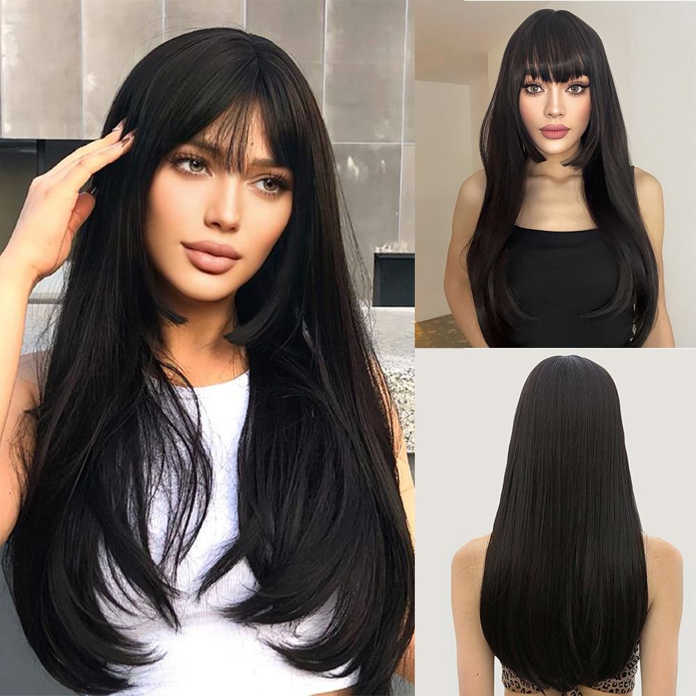 Черные парики из синтетических волос, длинный прямой парик принцессы с челкой для женщин, афро косплей, Лолита, натуральные волосы, термостойкое волокно