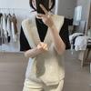Необычный свитер, жилет, кардиган женский, весенне-осенний, свободного кроя, без рукавов, с нишей, V-образным вырезом, вязаный жилет женский