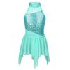 Девушки без рукавов с блестками и вырезом сзади для балета и танцев, гимнастический купальник, асимметричное платье, одежда для латинского джаза
