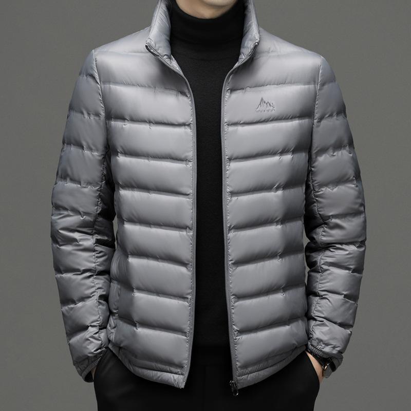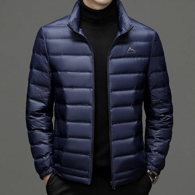 Мужской пуховик, зимний новый стиль, мужской высококачественный легкий пуховик с воротником-стойкой, легкая теплая куртка на белом гусином пуху