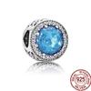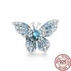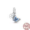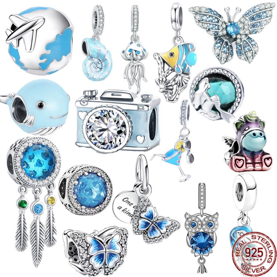 Синий Стерлингового Серебра 925 Бусина Сверкающая Сова Попугай Бабочка Единорог Мотаться Браслет DIY Ювелирные Изделия Подарок