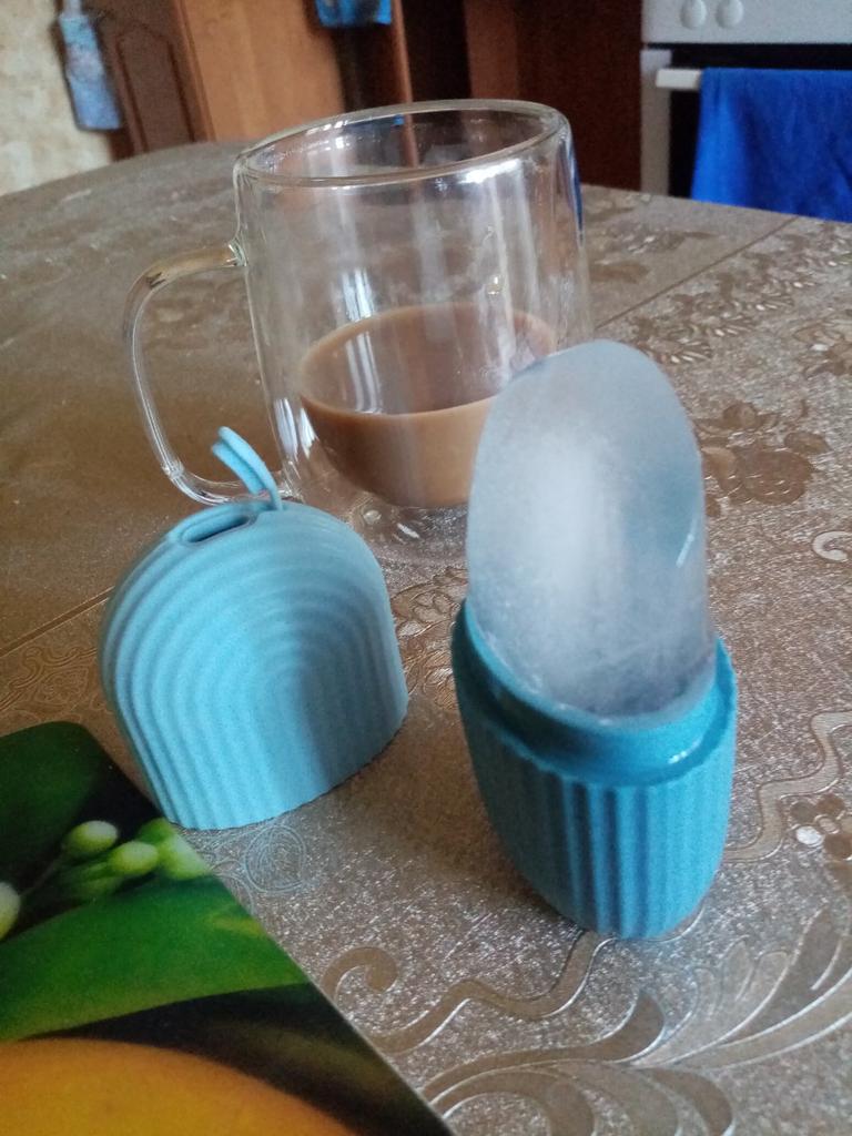 🔵Силиконовая форма для льда . ✈️Доставка в Москву за 29 дней в сборной посылке . ✈️Отслеживание велось на всём пути до почтового отделения ✅Отличный👍косметический девайс для массажа лица льдом. . 🔵Как лёд влияет на нашу кожу? ✅Любое холодовое воздействие в первую очередь влияет на сосуды-их интенсивное сужение и последующее расширение стимулирует кррвообращение, насыщая клетки кислородом. Кроме того, такая интенсивная работа сосудов оказывает лимфодренажный эффект, повышает тургор и тонус кожи. Отсюда тот самый вау-эффект избавления от отёков сразу после воздействия льда на кожу. . 🔵Плюсы ледяных процедур: . ✔️Снятие отёков ✅Контраст температур и массажное действие способствует оттоку излишков жидкости. . ✔️Сужение пор ✅Лёд охлаждает кожу, что способствует временному сужению пор и уменьшению выработки себума. Тем самым это снижает риск появления угрей и прыщей. . ✔️Повышение тонуса кожи ✅Холод стимулирует кровообращение и улучшает тонус, делая кожу более упругой. . ✔️Улучшение цвета лица ✅За счёт улучшения кровообращения цвет лица становится более ярким, свежим и сияющим. А на щеках появляется румянец. . ✔️Снятие усталости глаз ✅Использовании льда для массажа зоны вокруг глаз снимает отёчность и усталость глаз. Это особенно полезно утром, чтобы освежить взгляд и сократить признаки усталости. . ✔️Уменьшение покраснений ✅Холодное воздействие успокаивает кожу, уменьшает покраснения при акне и раздражение, вызванное солнечным ожогом или другими факторами . . 🔵Каким должен быть лёд? ✅Вместо воды из-под крана правильней использовать фильтрованную или минеральную. При желании можно заморозить лёд с различными отварами и гидролатами(цветочной водой) так сок алоэ помогает увлажнить кожу и укрепить защитный барьер. Зелёный чай окажет антиоксидантное действие. Календула, шалфей и ромашка помогут в уходе за проблемной и жирной кожей. ✅Вот такие положительные свойства оказывает нам лёд в нашей красоте и молодости. ✅ Что-то почерпнула из интернета. . ✔️Теперь немного о самой форме ✅Как я уже писала о том, что форма выполнена из силикона. ✅Силикон прочный, надежный. ✅Тактильно очень приятный на ощупь ✅Когда держишь его в руках, руки не мерзнут ✅В руке не скользит, держать форму удобно ✅Форма состоит из двух частей ✅Сверху имеется отверстие с крышечкой, в которую наливается вода. ✅После того как налили водичку в форму, кладём ее в морозильную камеру для застывания. .✅И ваш лёд в виде мороженки готов к использованию😊 ✅Льдом проводим по лицу по массажным линиям. ✅Ооооочень приятные ощущения от такого массажа) ✅Теперь это моя любимая процедура.❤! ⚪Перед процедурой лицо сначала нужно очистить и после приступать к массажу. ✅Такая вещица должна быть у каждой дамы🌹 ✅Покупкой конечно же осталась довольна на все 💯 %!! И Ваи однозначно рекомендую! ✅Спасибо продавцу, спасибо JOOM💜! ✅Всем удачных покупок🌹