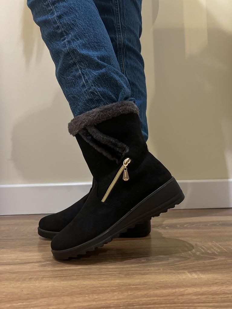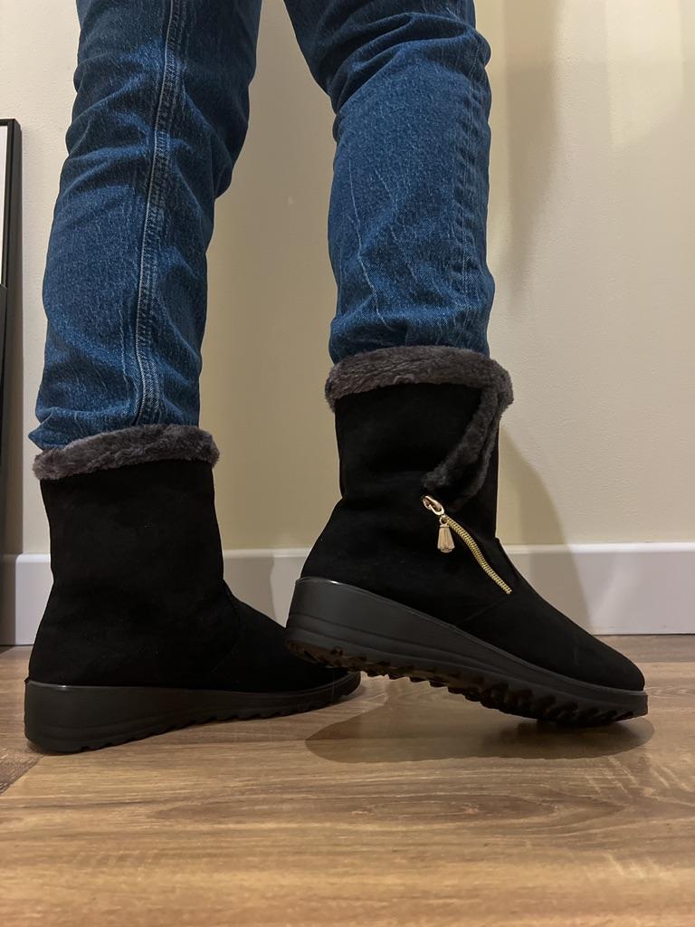 Мой Telegram-канал💙 - alyona_lacoste1983 Подписывайся, рада каждому💕 ЛЕГКИЕ МЕХОВЫЕ САПОЖКИ от Hii Bloom 🖤🖤🖤 Эту пару обуви брала для мамы, она довольна! Сапожки мягкие, лёгкие и очень удобные в носке. Идеальны на тёплую зимнюю погоду. Три цвета на выбор, я взяла в чёрном цвете, ещё есть коричневый и тёмно-красный. Размеры от 35 по 43 🎗️Заказала 40 размер, мне подошли отлично, но без запаса. Стопа у меня неширокая, длина 24,5 см. Размер выбирайте по длине стопы, указанной в таблице, советую брать как минимум на один, а то и на два размера больше! ⭐Отличное качество, никаких нареканий👌 Верх из искусственного материала под замшу, подошва лёгкая и довольно гибкая, выполнена из резины. Внутри мягкий искусственный мех. Сбоку вшиты золотистые замочки. Товар как всегда полностью соответствует промофото💯 Присмотритесь к этим чудным сапожкам🤩😉 Они сейчас на скидке🔥🔥🔥