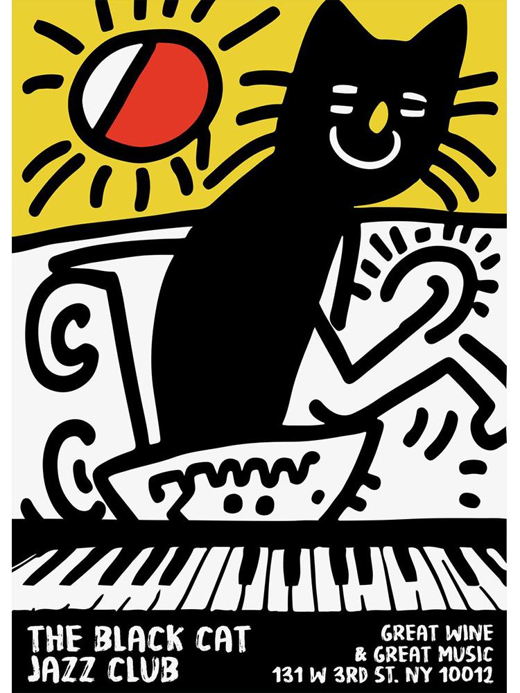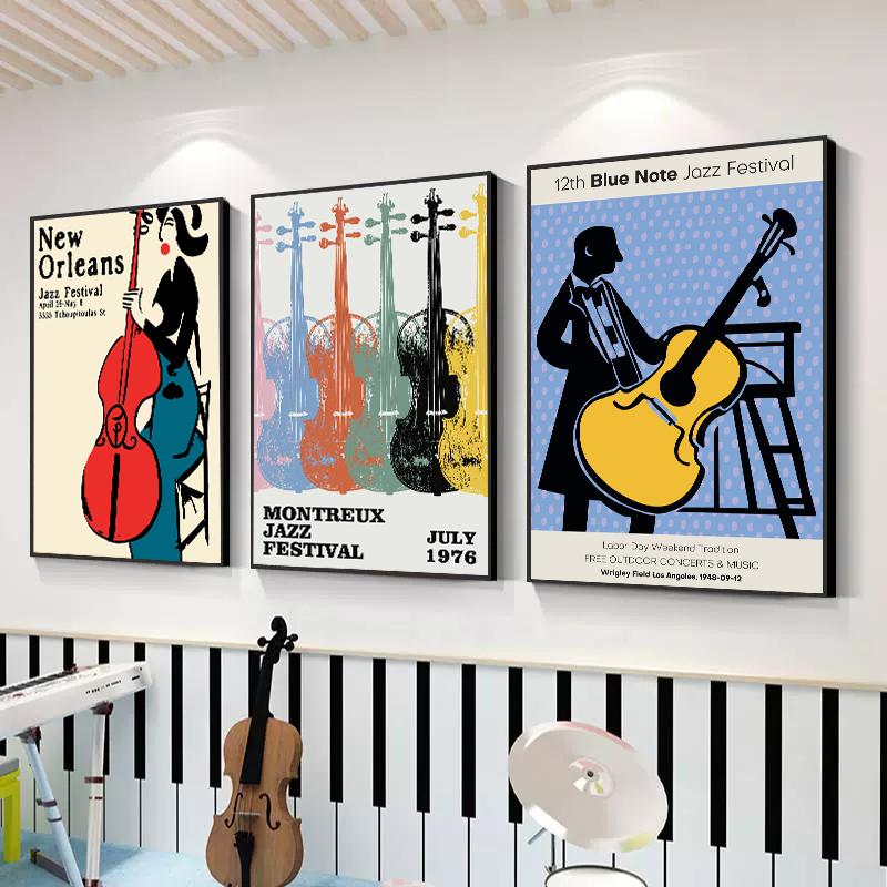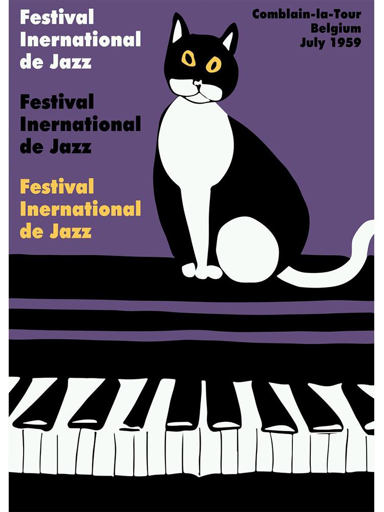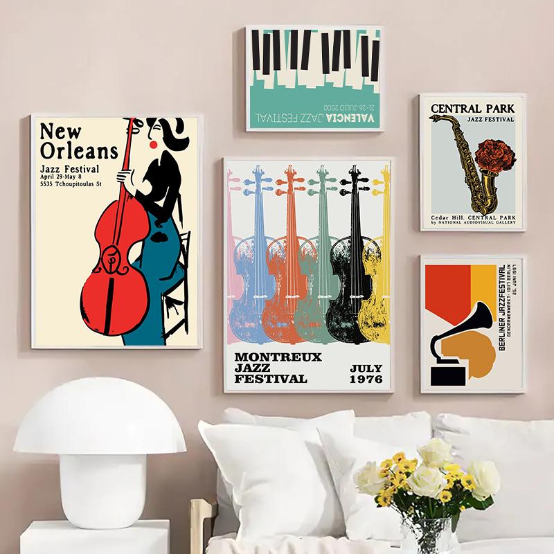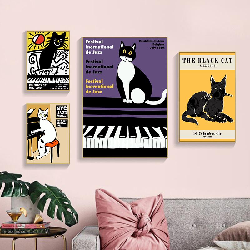 Винтажные джазовые плакаты, джазовый фестиваль в Монтрё, граммофон, черный кот, холст, картина, скандинавское настенное искусство для гостиной, домашний декор