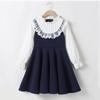 Осеннее и зимнее платье для девочек, платье принцессы с круглым вырезом и кружевной кромкой, с длинными рукавами