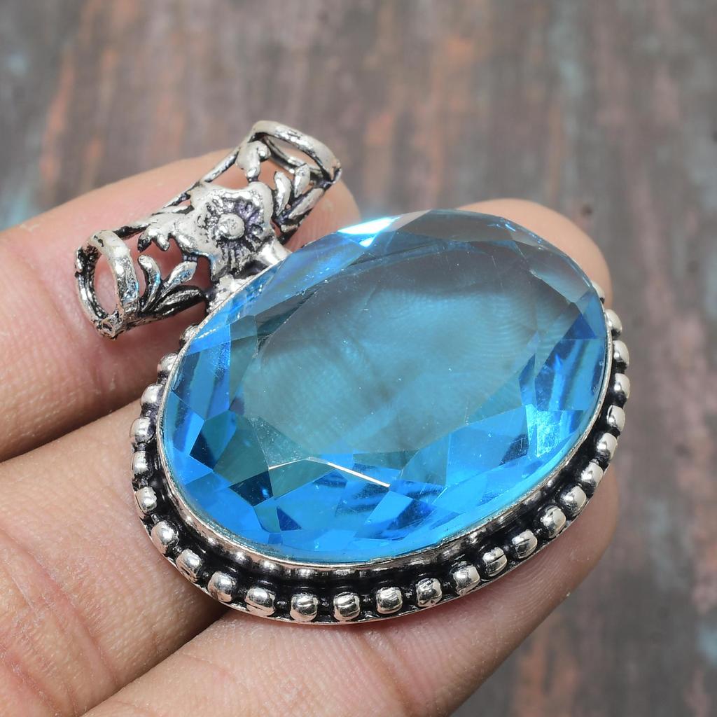 Швейцарский синий топаз, драгоценный камень, твердый кулон из стерлингового серебра 925 пробы, ювелирное изделие ручной работы для женщин