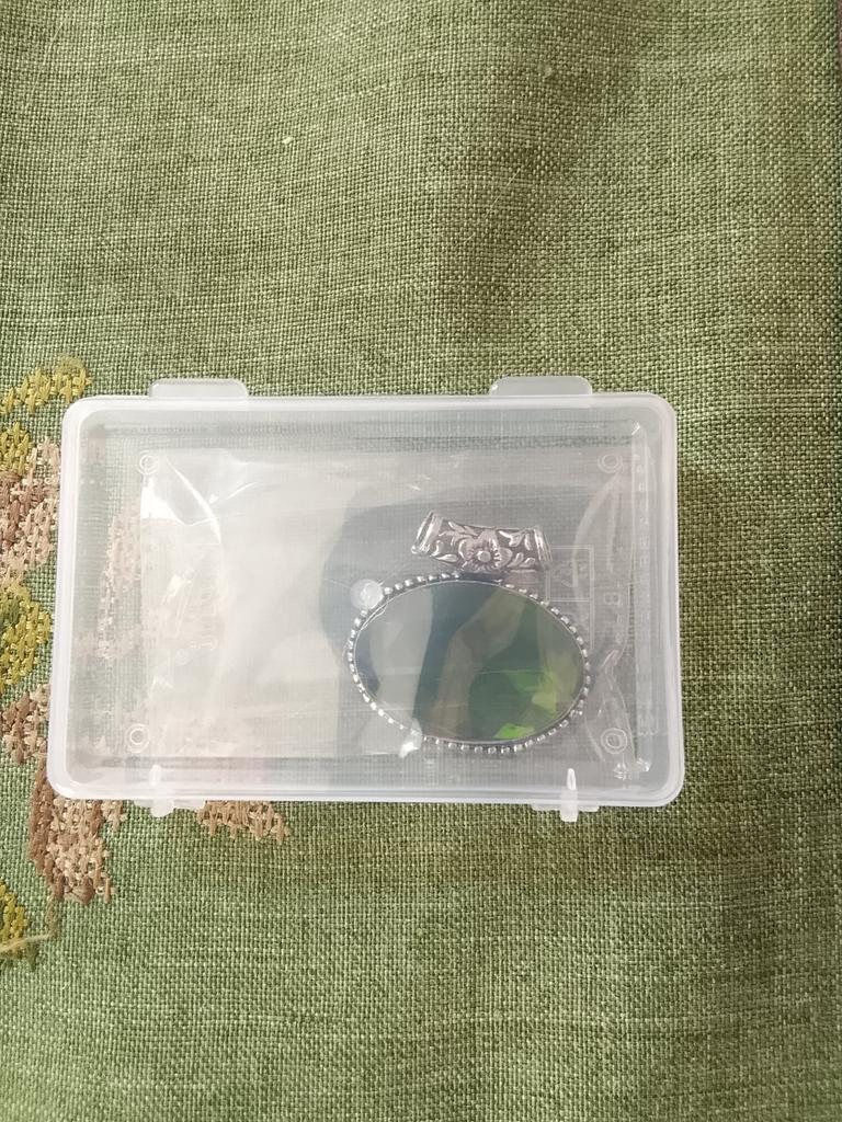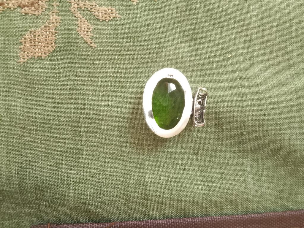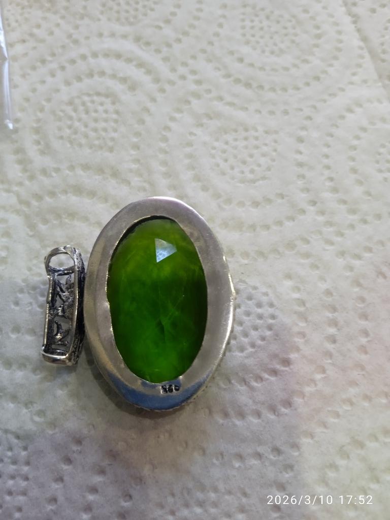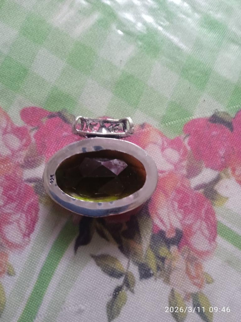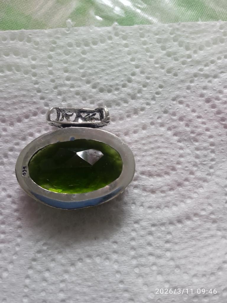 Получила кулон с перидотом, но качество не устраивает, так как петля припаяна не по центру, а криво