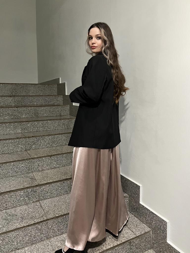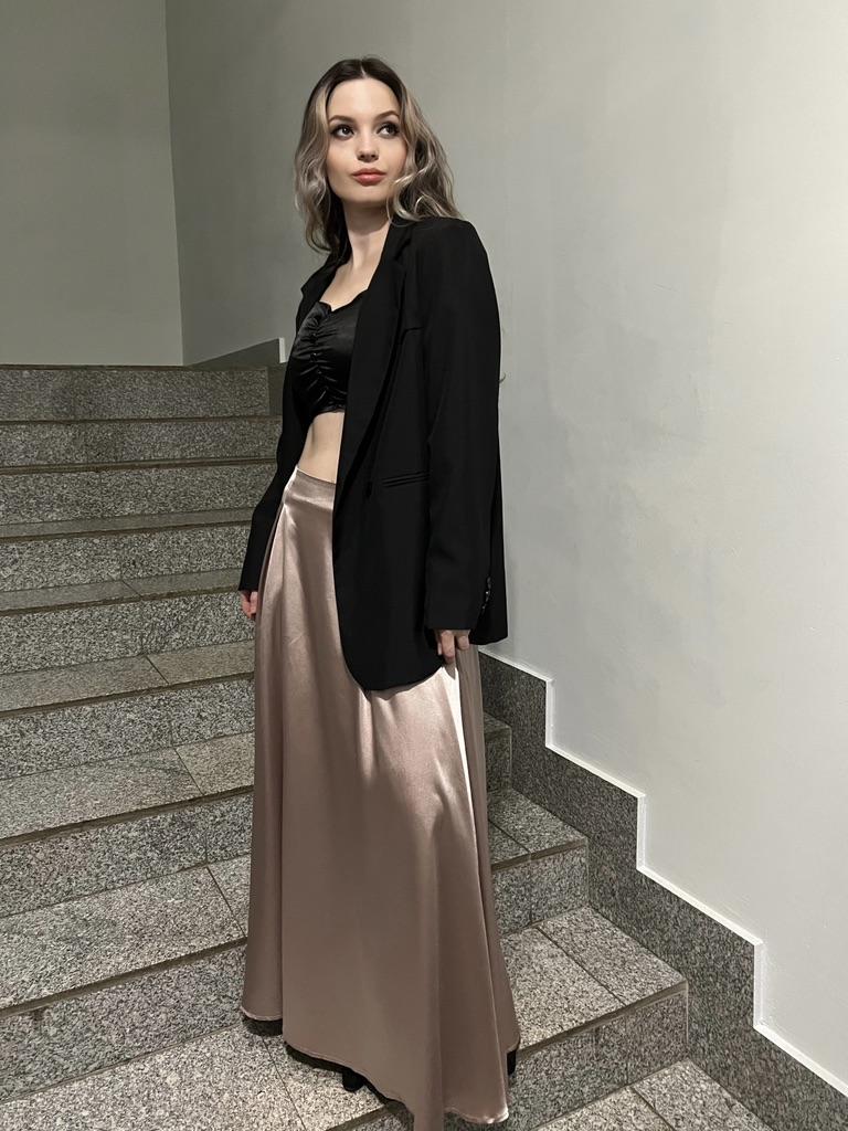 @anaisjoom - мой Телеграм-канал. Подписывайтесь, друзья, там много всякого разного❤️ Никогда не носила такие юбки. Решила, что все же одна да должна быть в гардеробе. 🔸На выбор три расцветки и три размера. В реале тот цвет, что я выбрала, ближе к розовому золоту. На мне размер М. - Точные замеры юбки: Длина - 93,5 см ОТ - 70-82 см ОБ - 172 см - Мои параметры: Рост - 164 см ОТ - 64 см ОБ - 93 см 🔸Атлас - это благородный материал с характерной гладкой и блестящей текстурой. Розовое золото добавляет юбке нотку элегантности и роскоши. Материал легко отражает свет, создавая игру светотени и делая ваш облик ярким. 🔸Длинная юбка придает образу загадочности и изящества. Она позволяет создать эффектные образы, особенно в сочетании с обувью на каблуке. 🔸Розовое золото - это нежный и женственный цвет, который придает юбке особую изысканность. Этот оттенок часто ассоциируется с роскошью и утонченностью. 🔸Длинная атласная юбка идеально подходит для особых моментов и мероприятий, таких как вечеринки, свадьбы, или другие торжества. Она может быть как частью платья, так и отдельной вещью. 🔸С такой юбкой можно создать разнообразные образы, включая романтические, вечерние и даже повседневные, в зависимости от того, с чем ее сочетать. Блузы, топы, или жакеты - все это хорошо сочетается с атласной юбкой. 🔸Атлас требует бережного ухода, но стоит усилий. Обязательно соблюдайте рекомендации по стирке и хранению, чтобы сохранить его первозданный вид. Длинная юбка из атласа цвета "розовое золото" - это идеальный выбор для торжественных мероприятий и особых случаев. Она придает вам уверенность, утонченность и делает образ незабываемым. Рекомендую 👍 Ставлю ⭐⭐⭐⭐⭐ Большое спасибо продавцу ❤️ и Joom ❤️