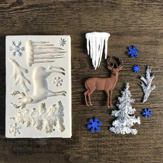 Рождественская елка олень Снежинка 3D силиконовая форма для торта помадка DIY форма для выпечки