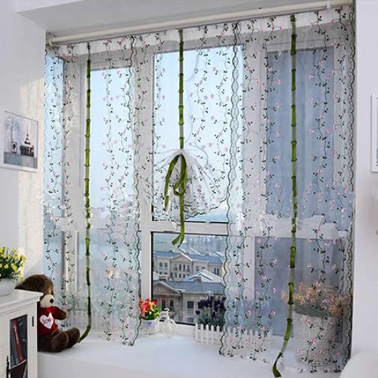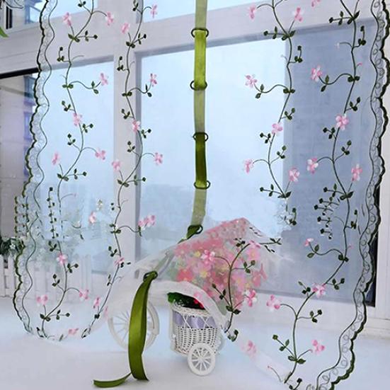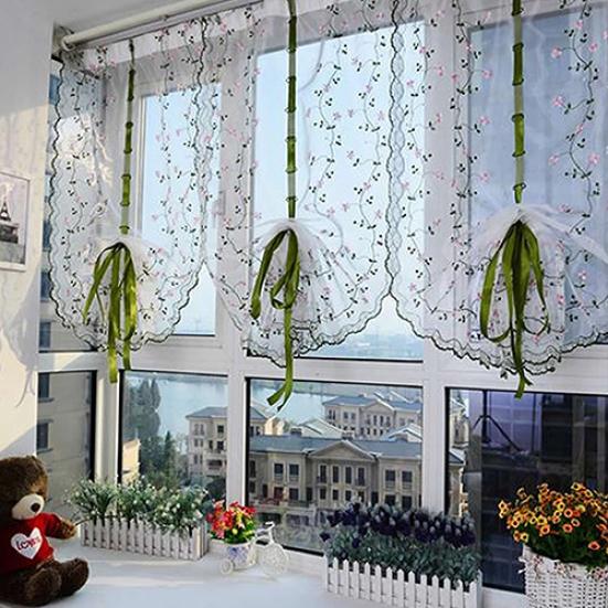 Сельская свежая ручная вышивка с цветочным абажуром, прозрачная вуаль для двери кафе, кухни, занавеска