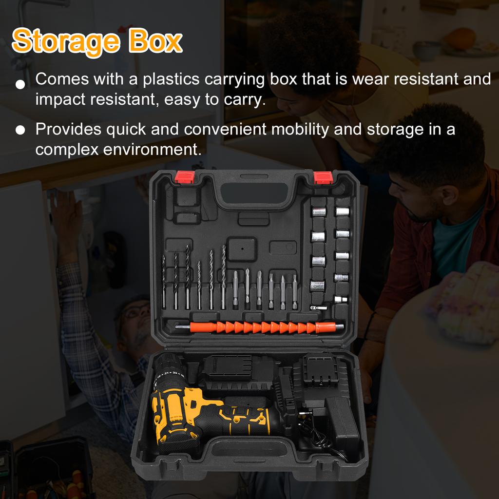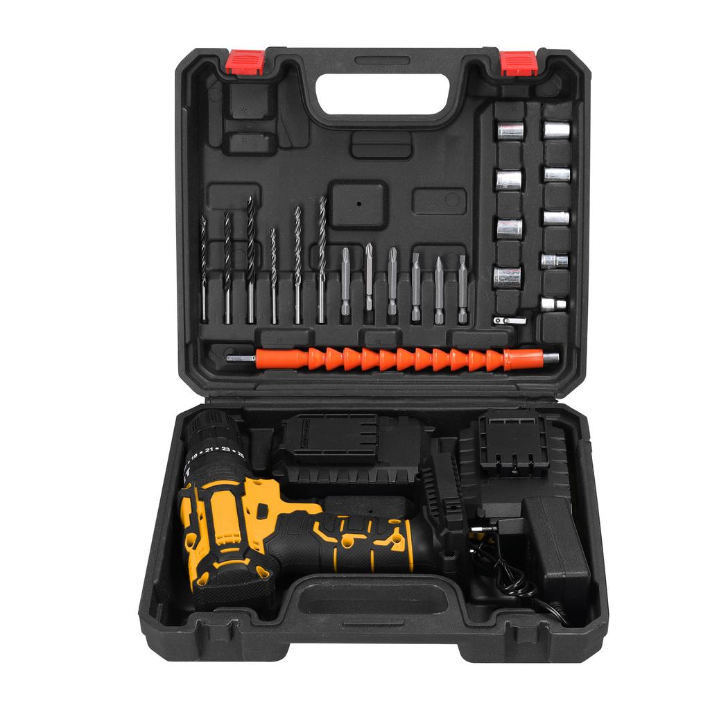 Электрическая дрель имеет конструкцию 3 в 1, регулируемое направление вращения вперед и назад, а также с функцией блокировки спускового крючка, легко разбирается и собирается. Многофункциональный, 25 + 3 ступенчатых настроек, обеспечивает 25 настроек кручения и 3 режима работы, может удовлетворить все ваши требования. Эргономичный противоскользящий дизайн ручки, легко захватывать и с удобным ощущением руки, практичный и трудосберегающий. Подходит для стеллажей на строительной площадке, обслуживания, деревообработки и т. Д.. Со светодиодным рабочим светом, обеспечивает освещение в темноте. Широкое применение, подходит для полок на строительных площадках, технического обслуживания, деревообработки и т. Д.