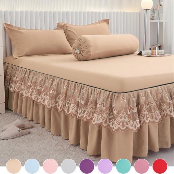 Кружевное покрывало, юбка-кровать, 3 шт., постельное белье, покрывало, наволочка, комплект, юбка из матовой микрофибры с рюшами (Простыня +2 наволочки) — купить товар онлайн с бесплатной доставкой по всему миру!