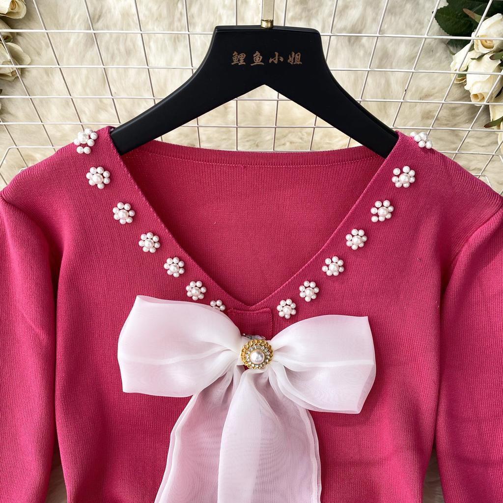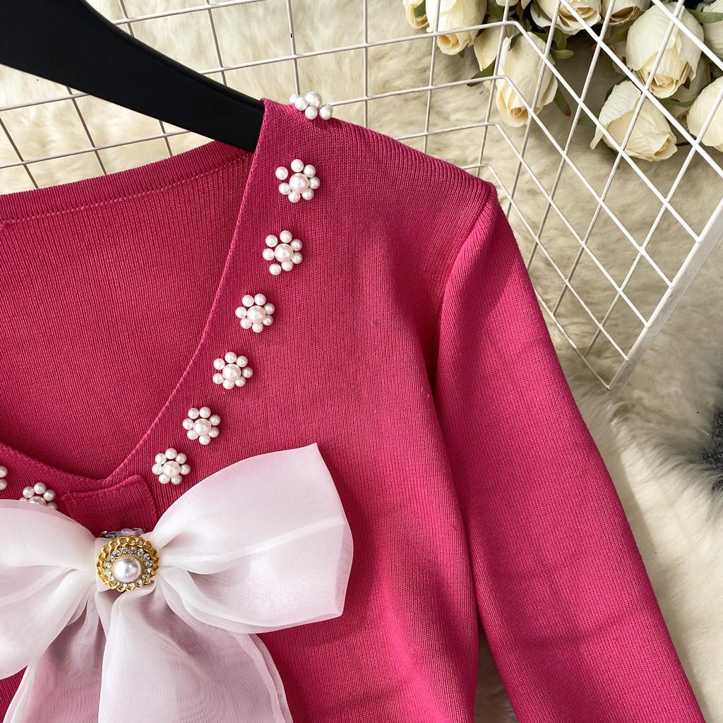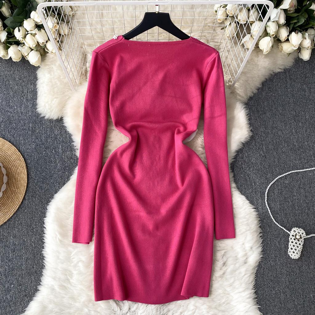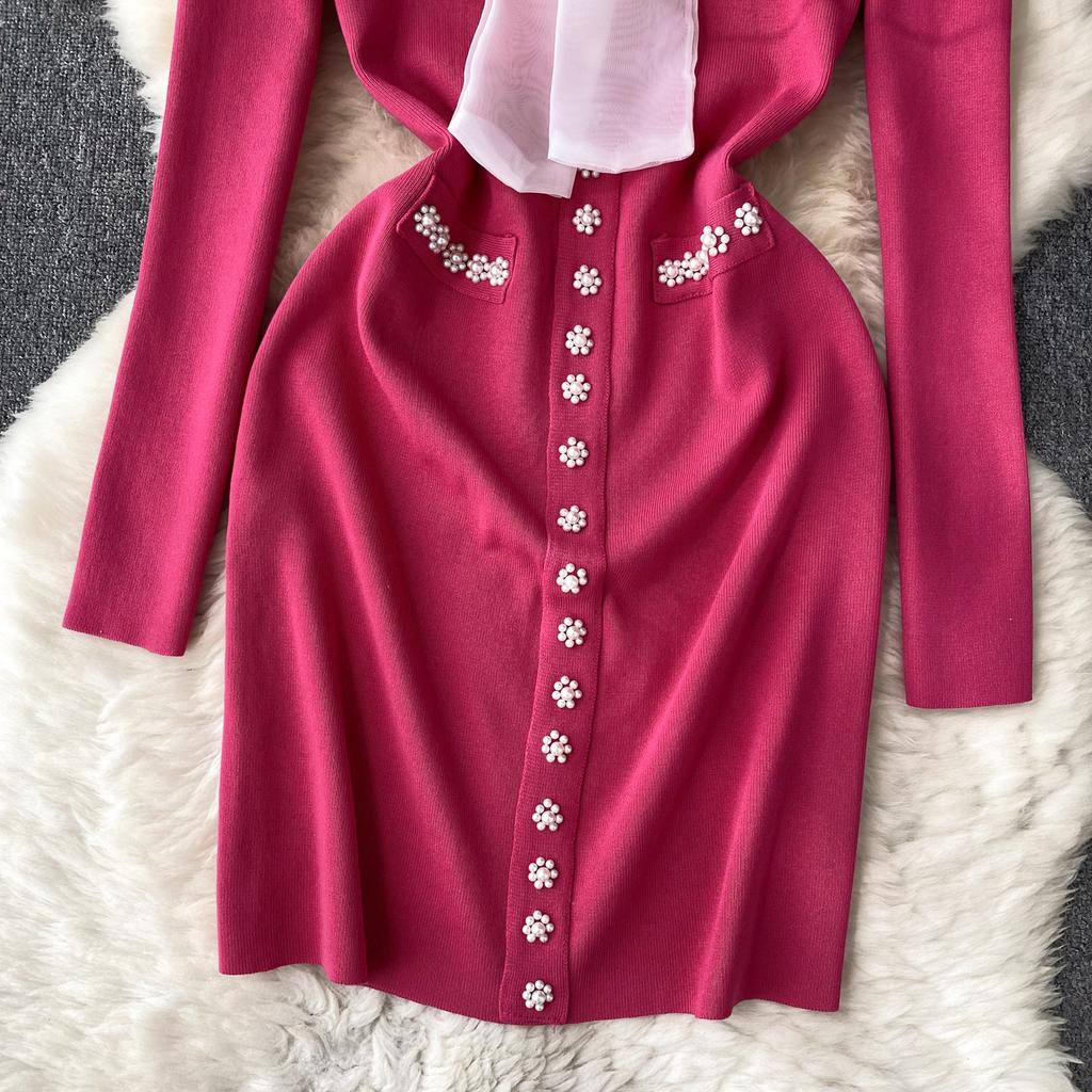 Элегантное модное облегающее платье с бантом и высокой талией, сексуальное вязаное эластичное облегающее платье с длинными рукавами, осенне-зимнее платье-свитер-карандаш