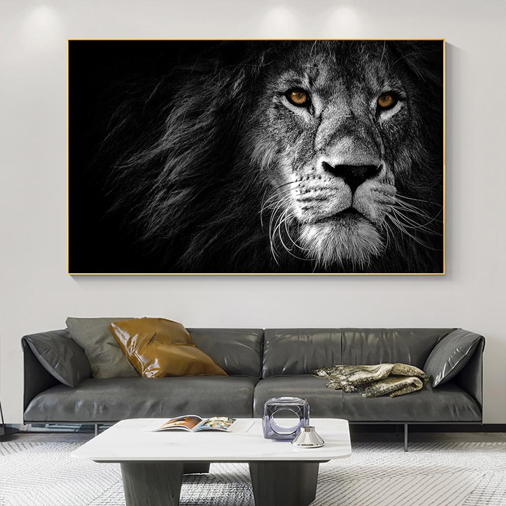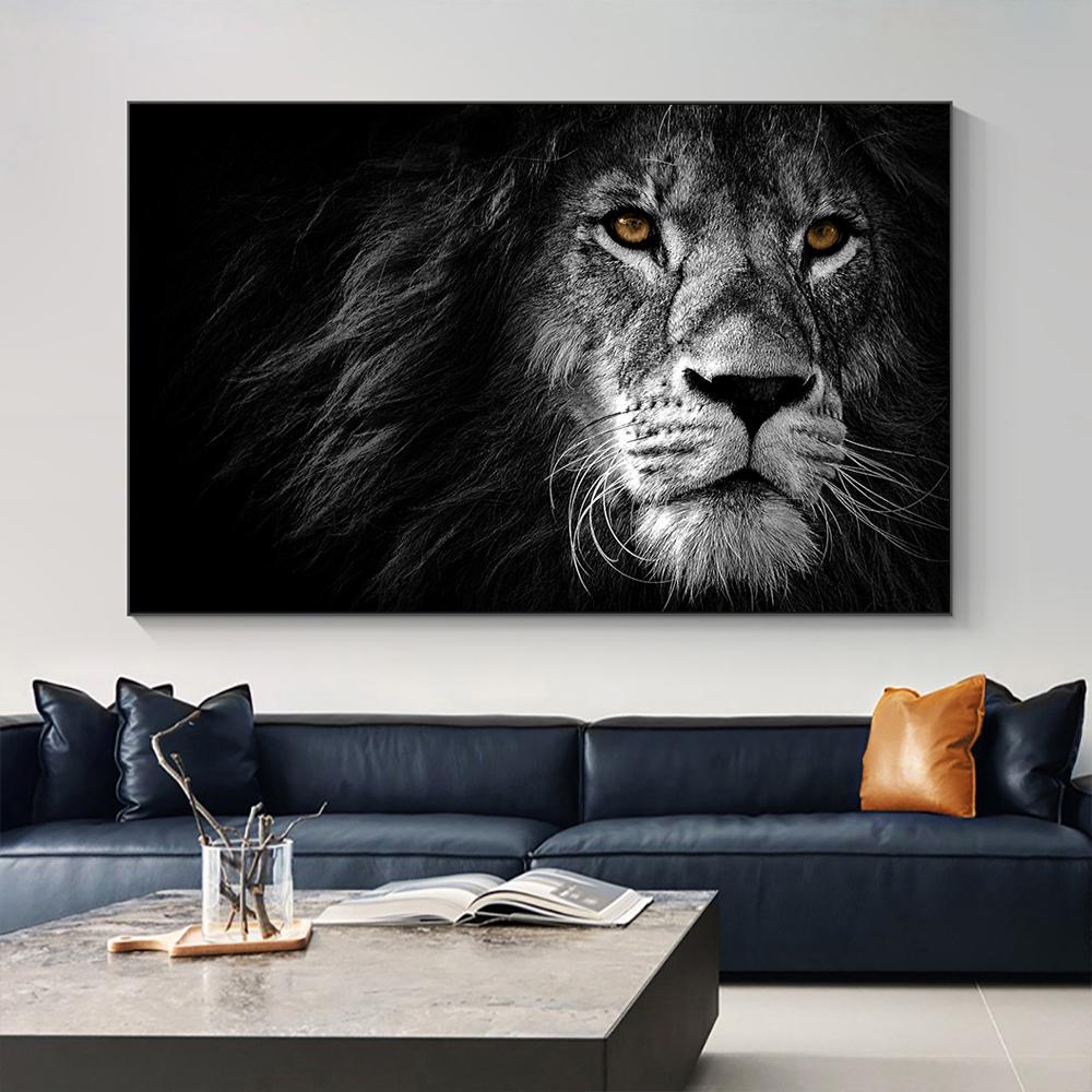 Картина маслом с головой черного льва, настенный художественный постер, эстамп высокой четкости, фотографии дикой природы для гостиной, украшение для дома