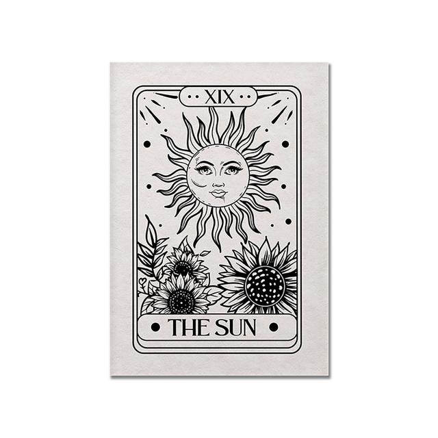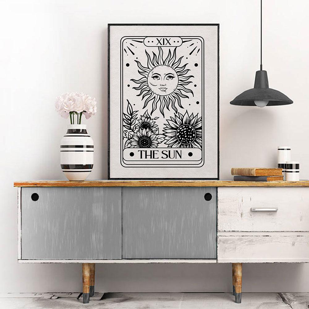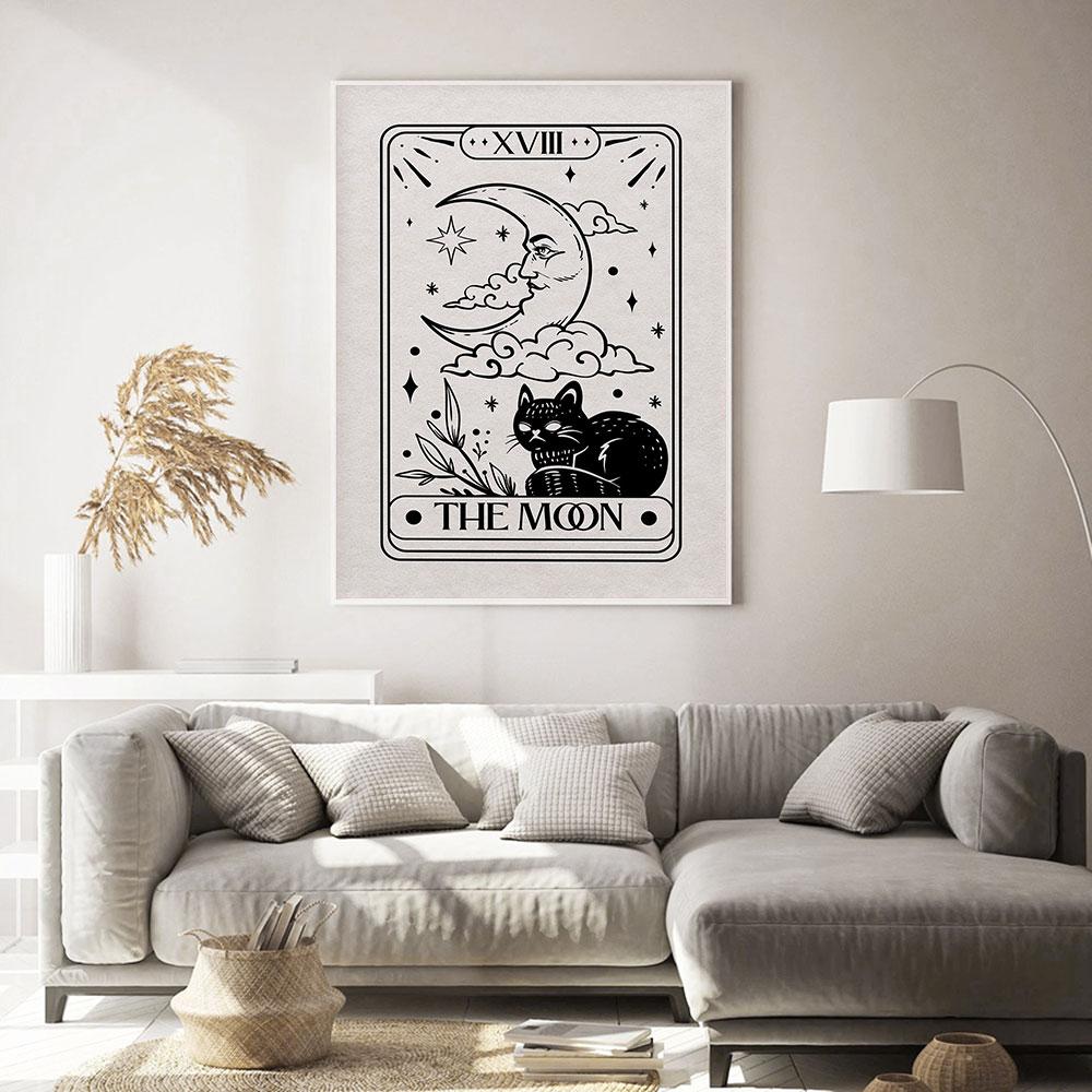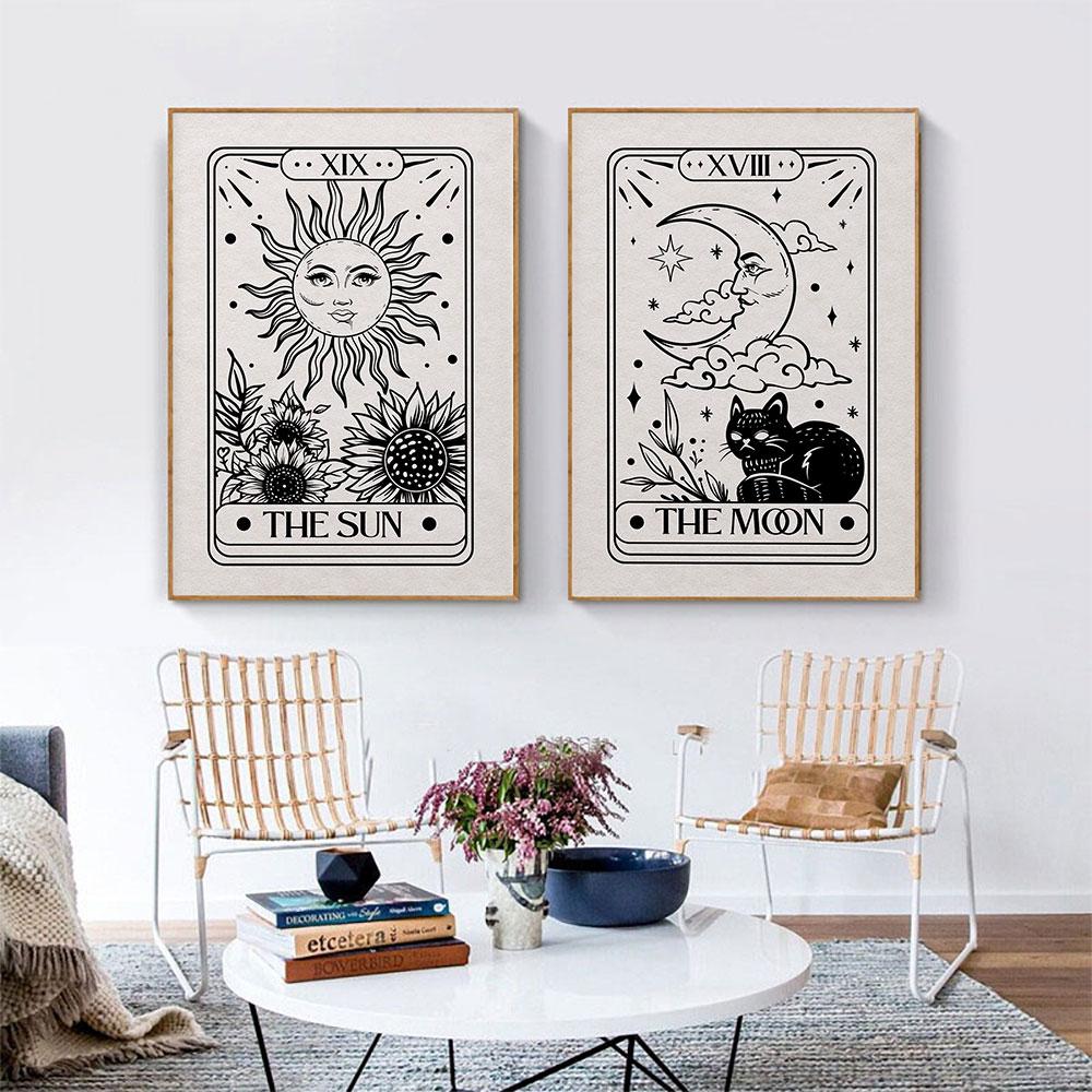 Таро Астрологический плакат Абстрактная загадочная Солнце Луна Кошка Картина маслом Черно-белая художественная печать Настенная живопись