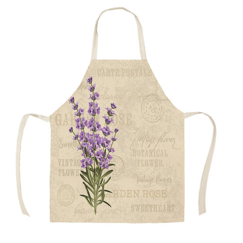 Женские и мужские хлопковые льняные фартуки с лавандовым узором для кухни, аксессуары для домашней кухни, выпечки, чистки Delantal Cocina Mujer