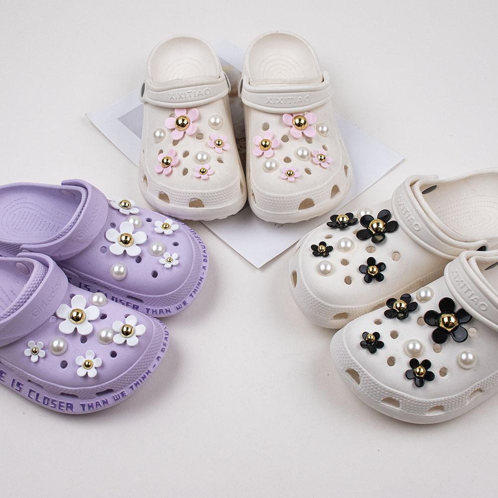 Самая продаваемая обувь с подвесками в виде крокодила, готовые надеть комбинированный костюм с белой маргариткой и подсолнухом, обувь с пряжкой, девичья обувь, аксессуары, новинка