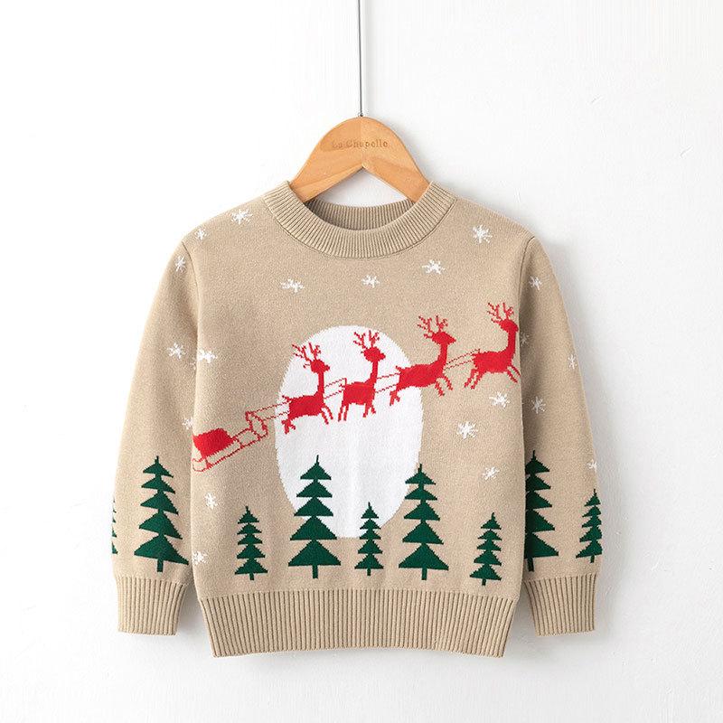 Осенне-зимний новый детский рождественский пуловер с оленем, свитер, детский трикотаж для отдыха, детская одежда