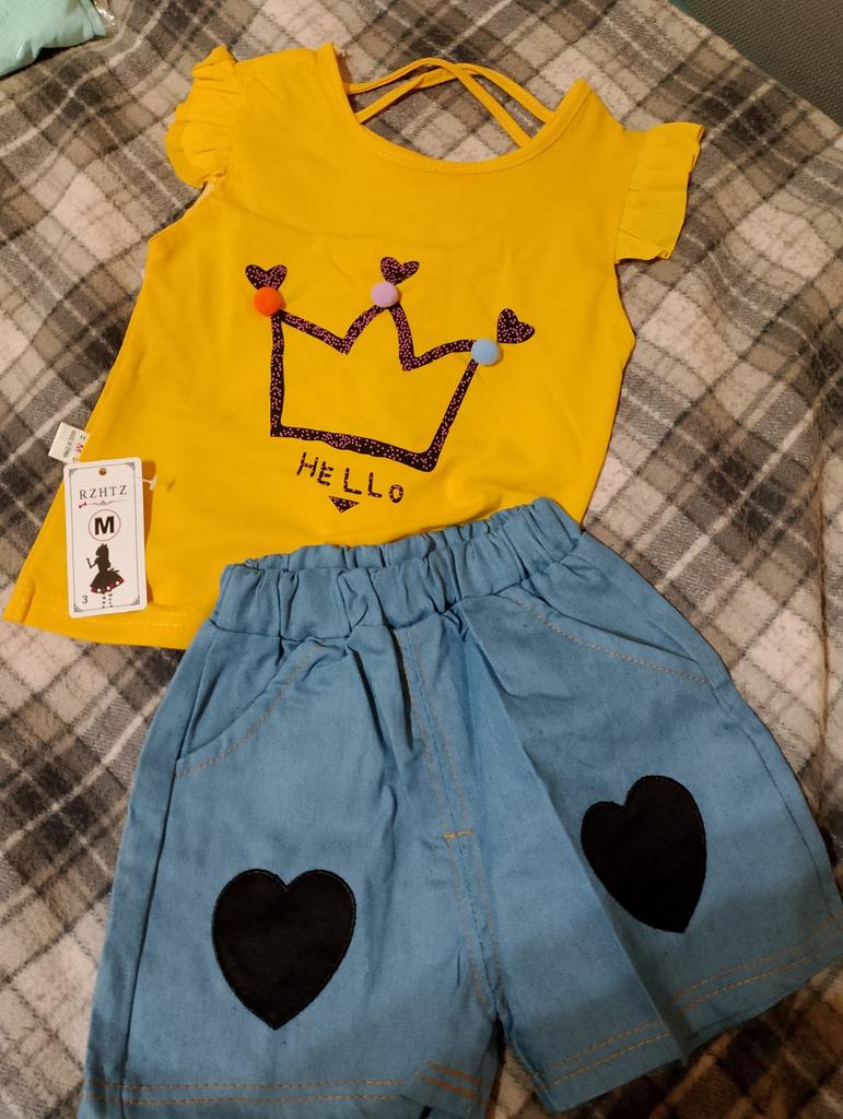 Классный костюмчик. Лёгкий, удобный, прошит аккуратно. После стирки не сел и не изменился рисунок). Плетение пояска аккуратное. В жару дочке в нём комфортно. На рост 89см шорты оказались впору, а вот футболочка длинновата(до середины бедра). Но сей момент не критичен)