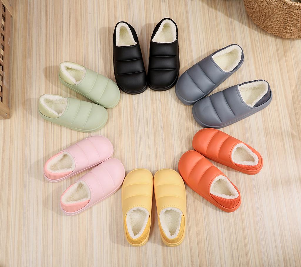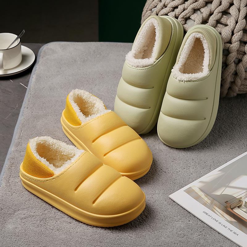 Зимние женские хлопковые тапочки, непромокаемая теплая плюшевая обувь, модная домашняя обувь на толстой подошве, нескользящие однотонные парные тапочки