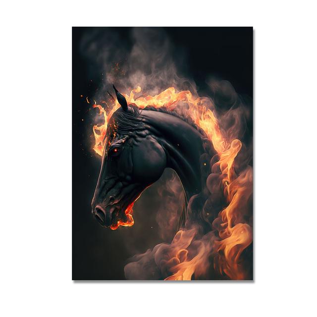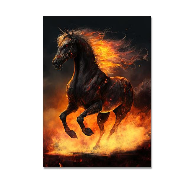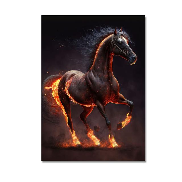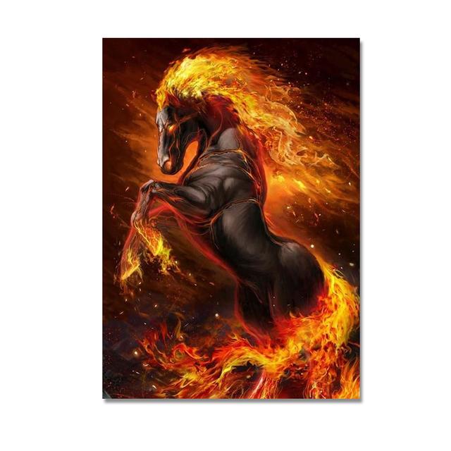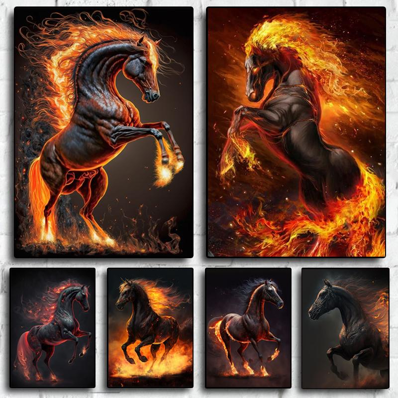 Абстрактная лошадь, бегущая и огонь, картина маслом, современные изображения животных, постеры и принты, настенное искусство для дома, гостиной
