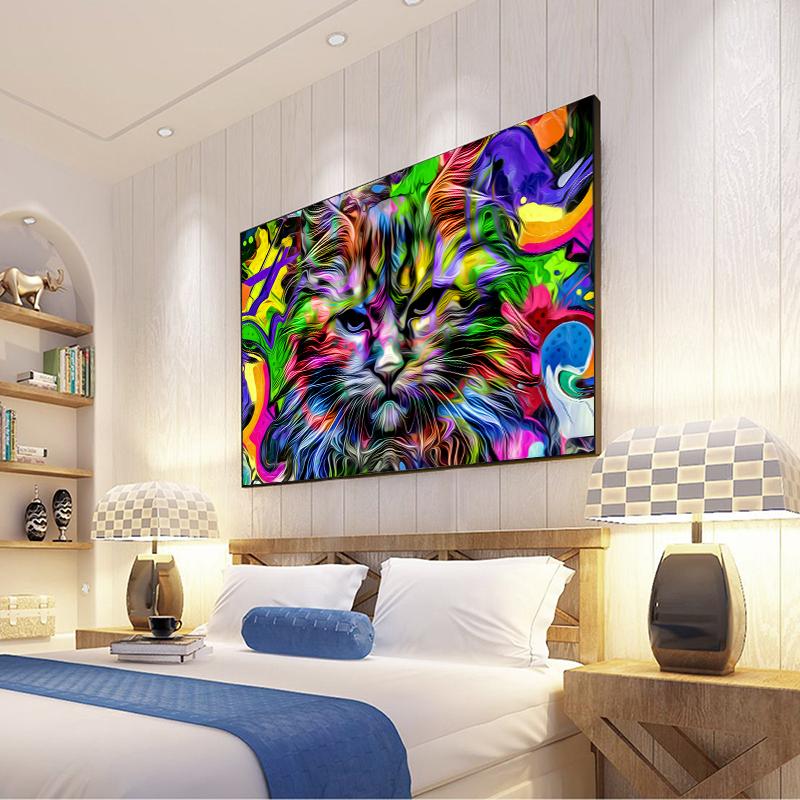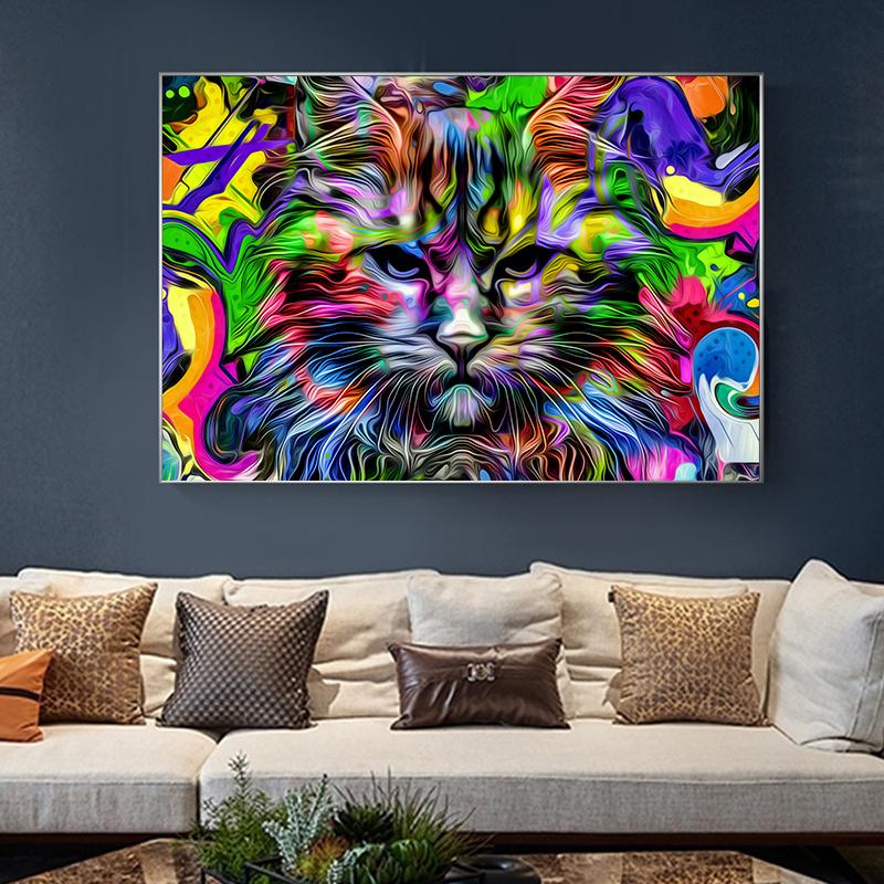 Абстрактные психоделические кошки, холст, живопись, постеры и принты, красочные настенные рисунки с животными