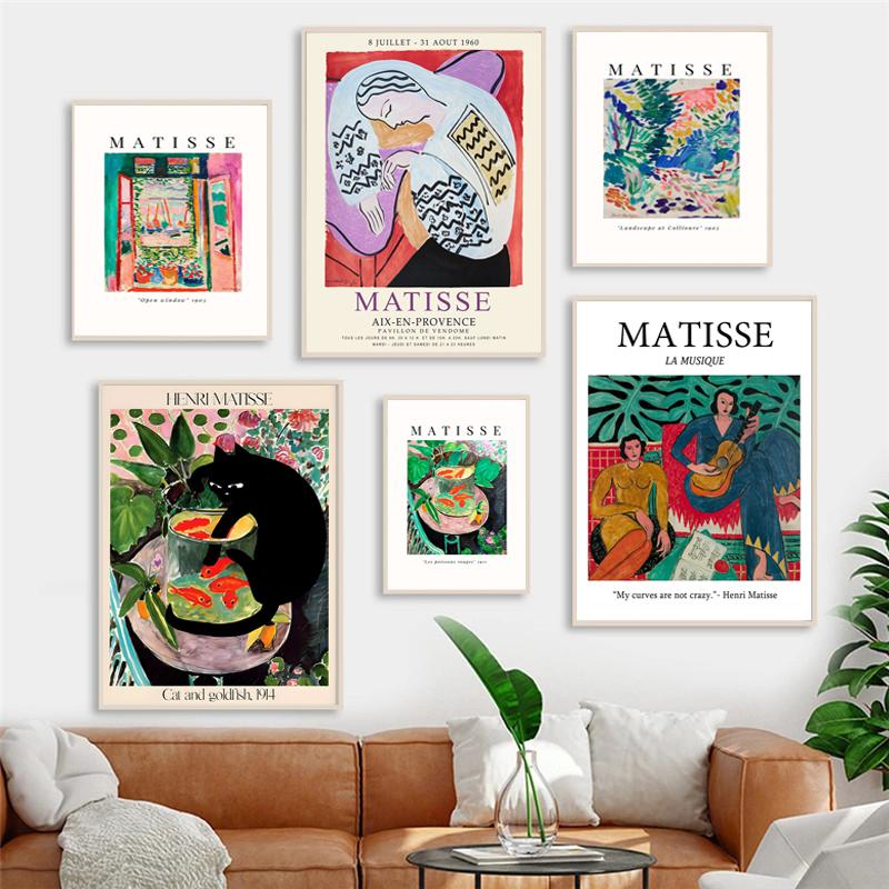 Винтажный красочный постер Matisse La Music с котом и золотой рыбкой для гостиной, картина маслом, настенное искусство для дома — купить товар онлайн с бесплатной доставкой по всему миру!