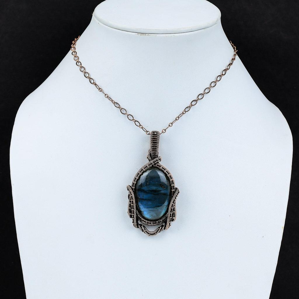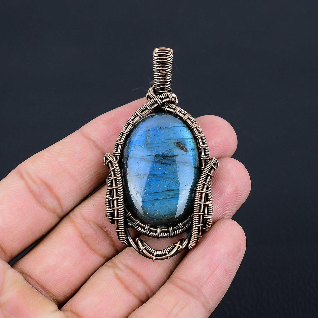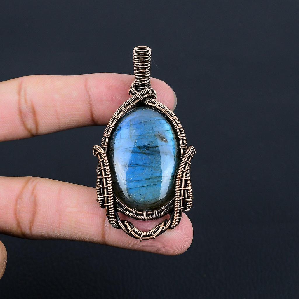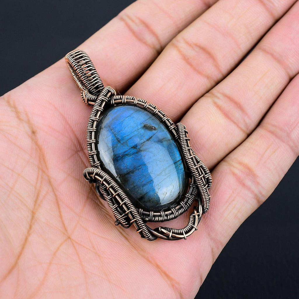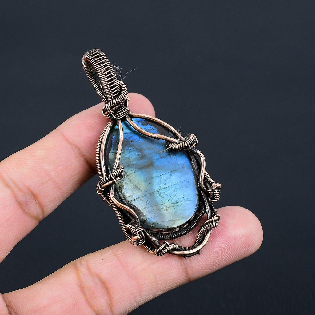 Подвеска из драгоценного камня лабрадорит из чистой медной проволоки, обернутая ювелирными изделиями ручной работы