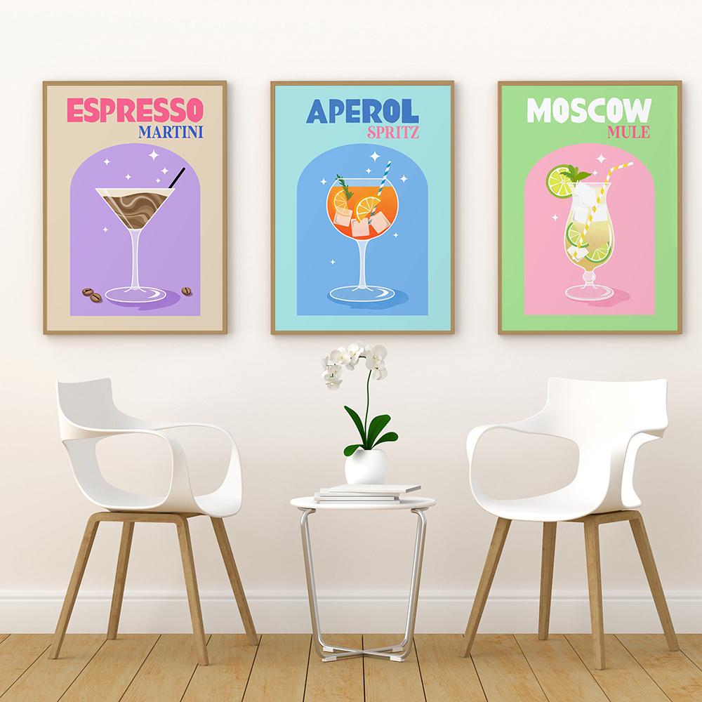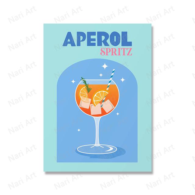 Коктейль Aperol, шампанское, напиток, красочный бар, настенная живопись на холсте, постеры на скандинавскую тему и печать