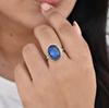 Кольцо с драгоценным камнем из лабрадорита, женское кольцо с камнем из стерлингового серебра 925 пробы, синее яркое кольцо, овальное кольцо, подарок на годовщину