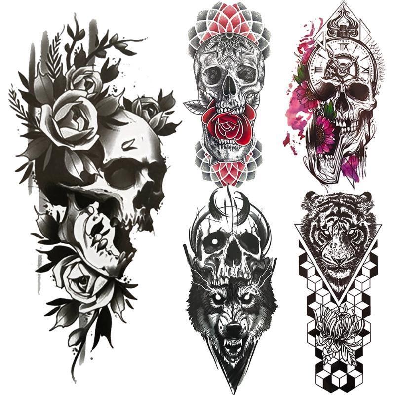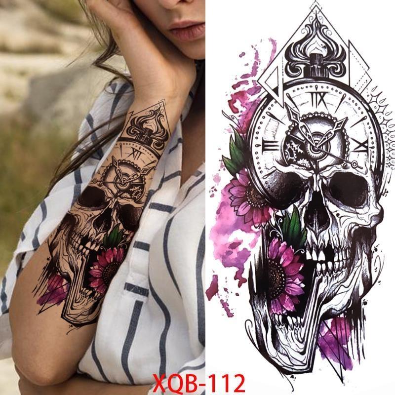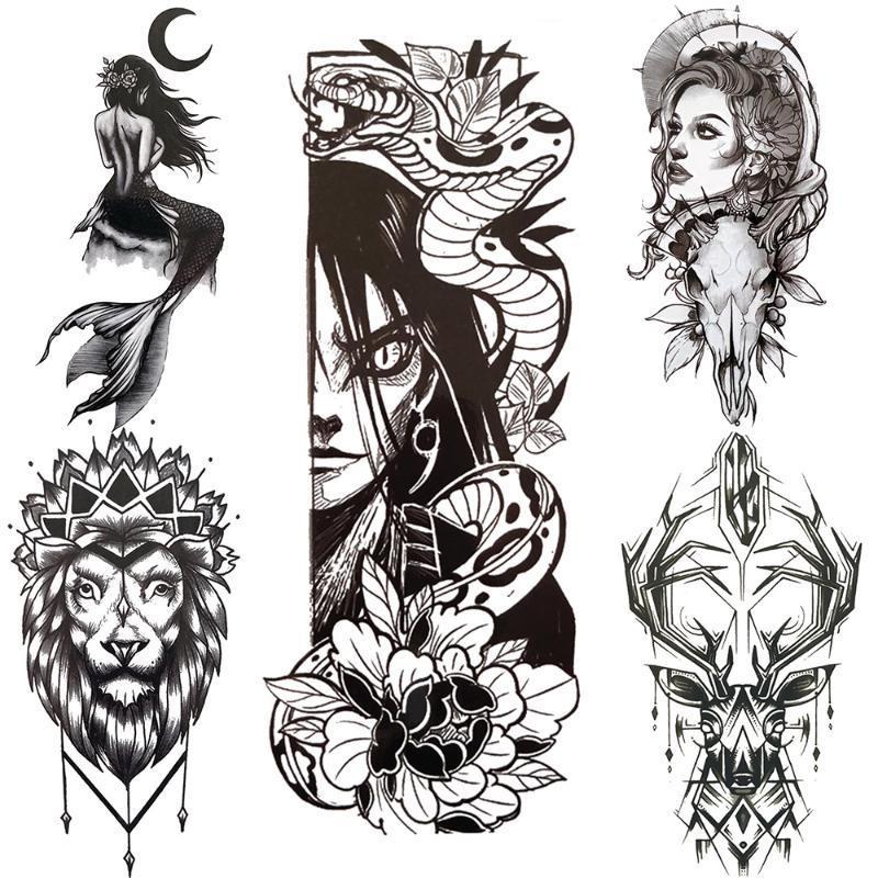 1 предмет 210*114 мм временная татуировка русалки для женщин и мужчин реалистичная лиса лев цветок татуировки наклейка на заднюю руку одноразовый череп смерти поддельные татуировки