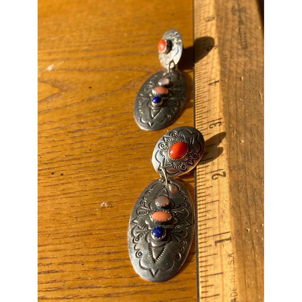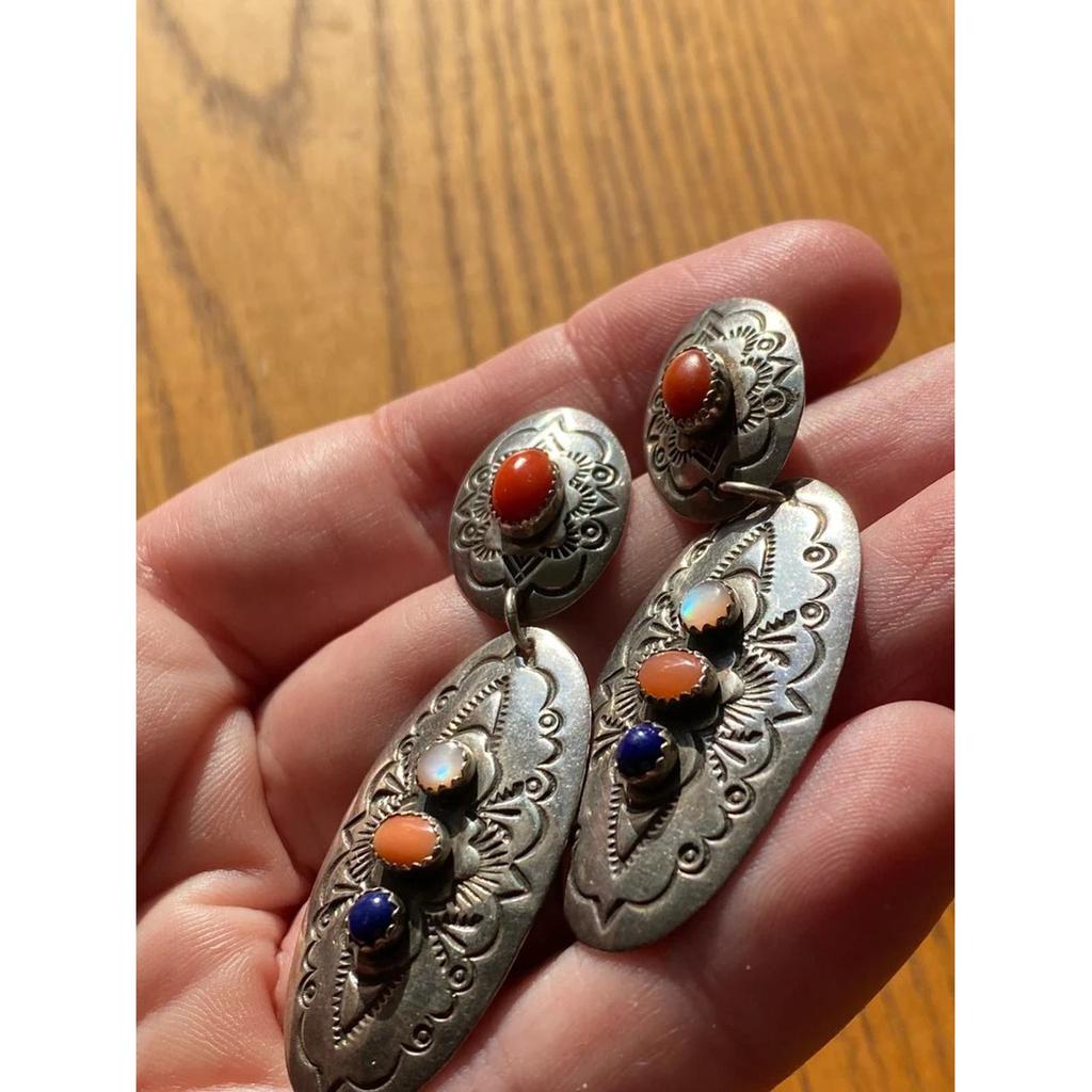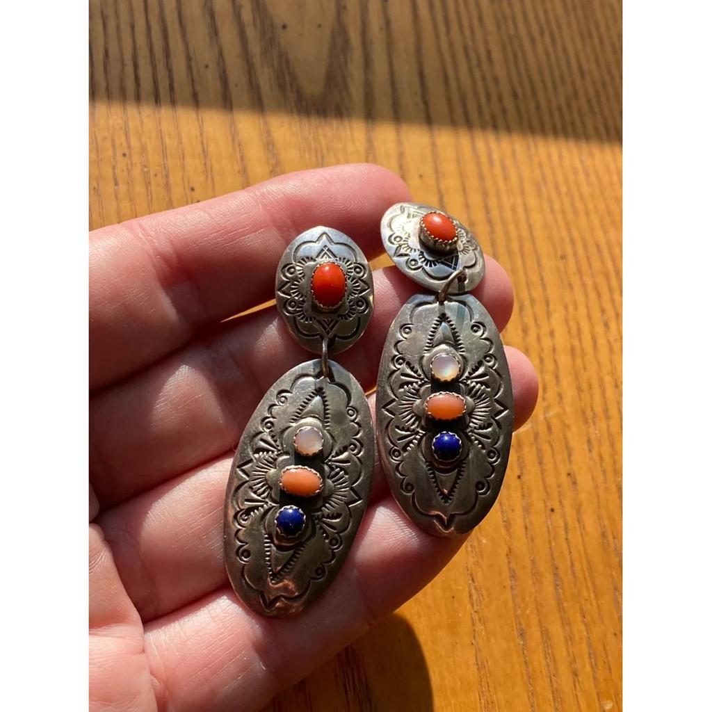 Этнические серебряные серьги с овальным узором и резьбой, висячие серьги для женщин, винтажные серьги с инкрустацией цветными камнями, ювелирные изделия