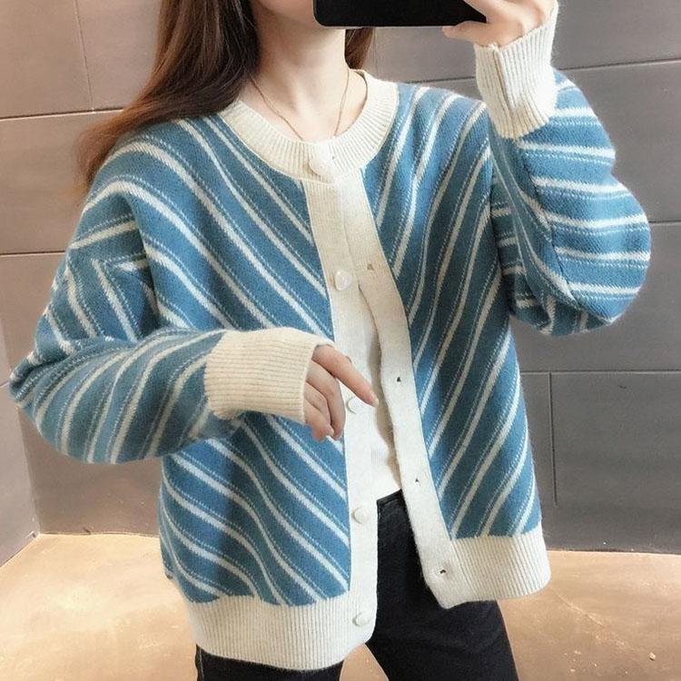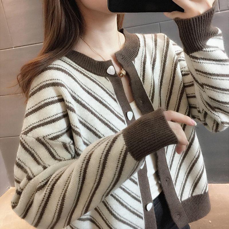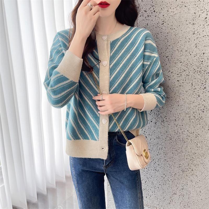 Новый саржевый вязанный кардиган с круглым вырезом, популярный для женщин 2023, повседневный свободный короткий винтажный свитер с длинными рукавами, кардиган, женские топы